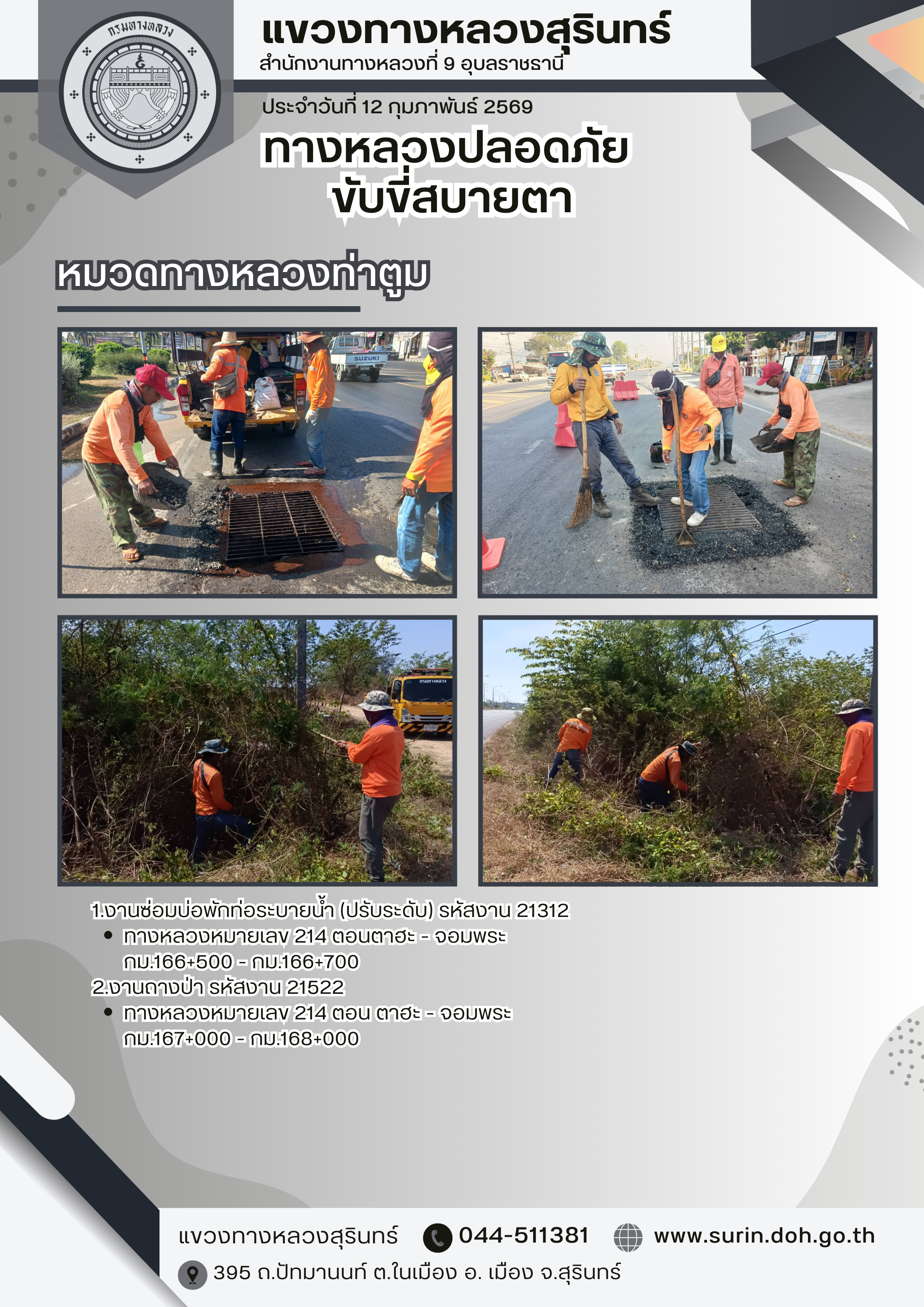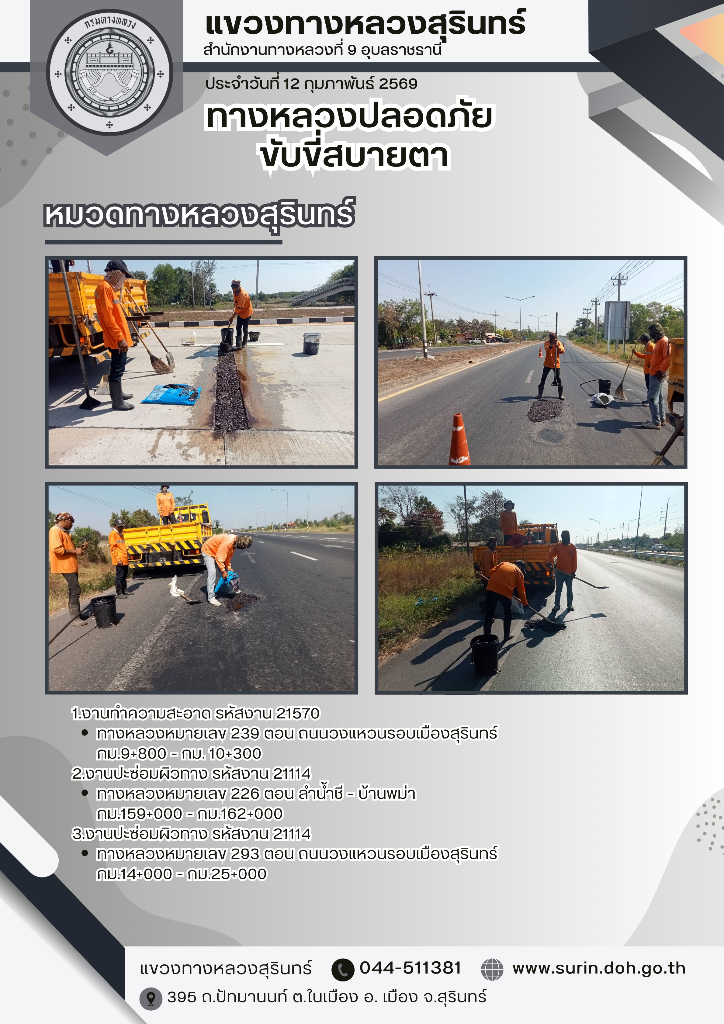 ทางหลวงปลอดภัย ขับขี่สบายตา 12 กุมภาพันธ์ 2569