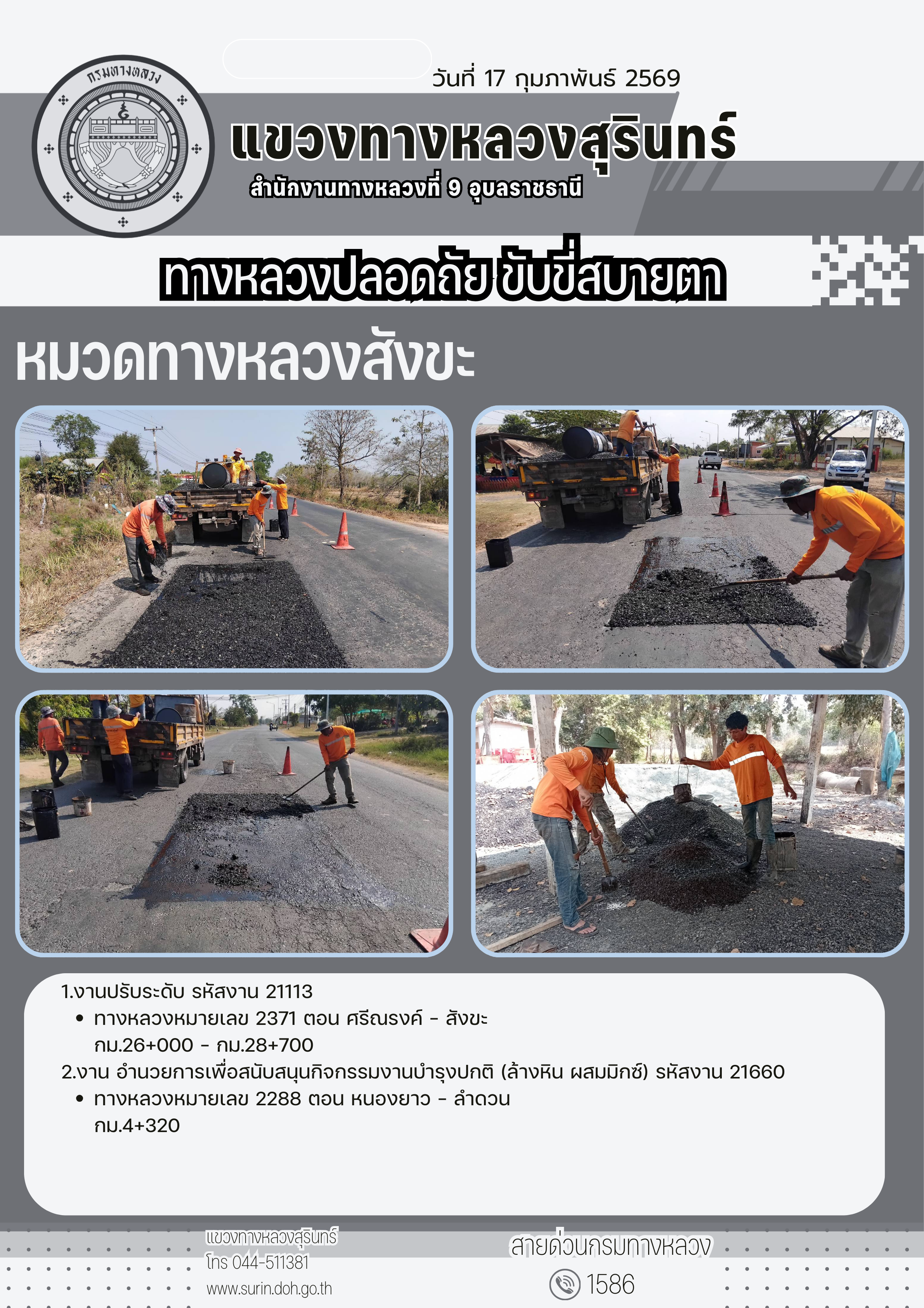 ข้อมูลข่าว : ทางหลวงปลอดภัย ขับขี่สบายตา 17 กุมภาพันธ์ 2569