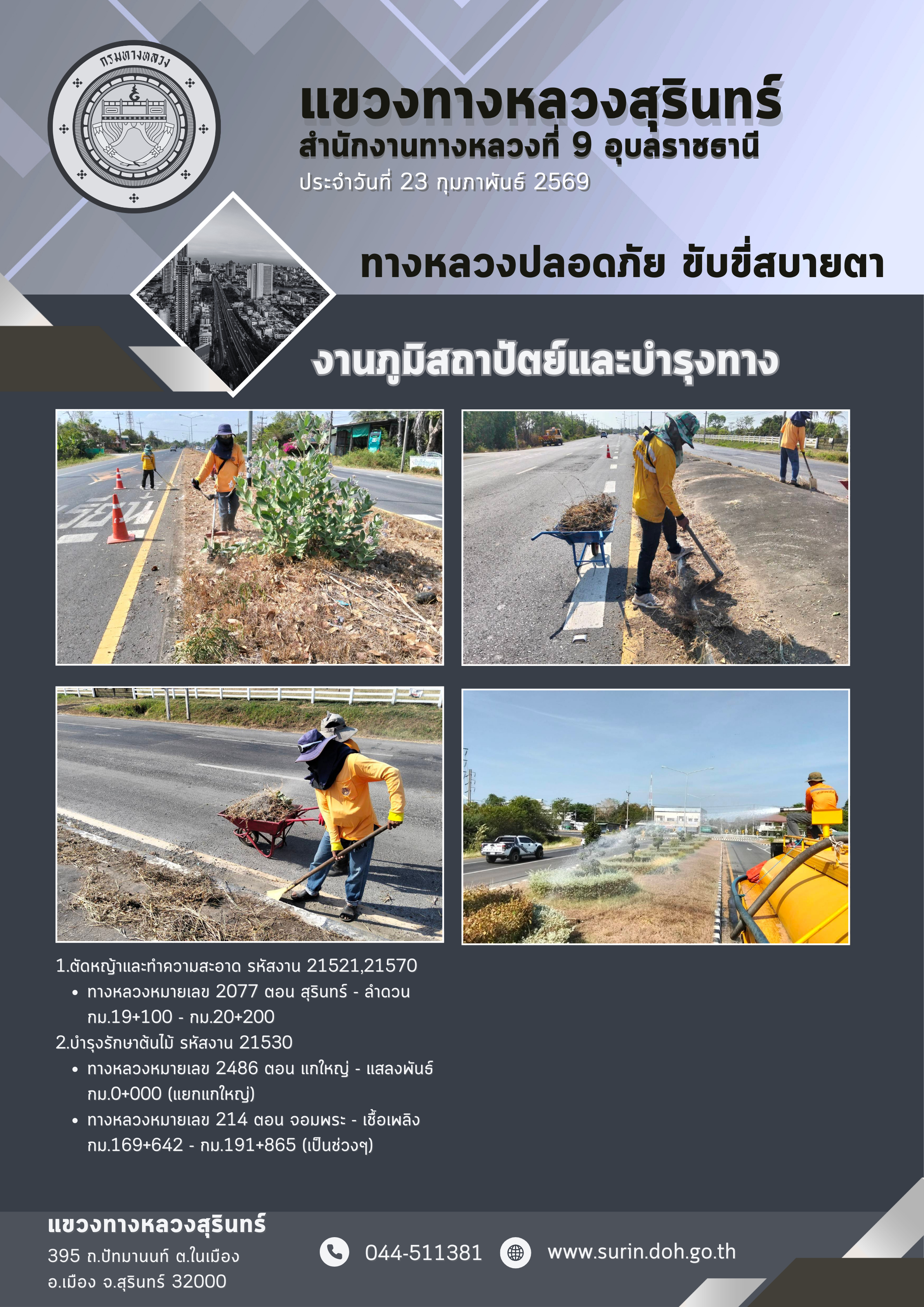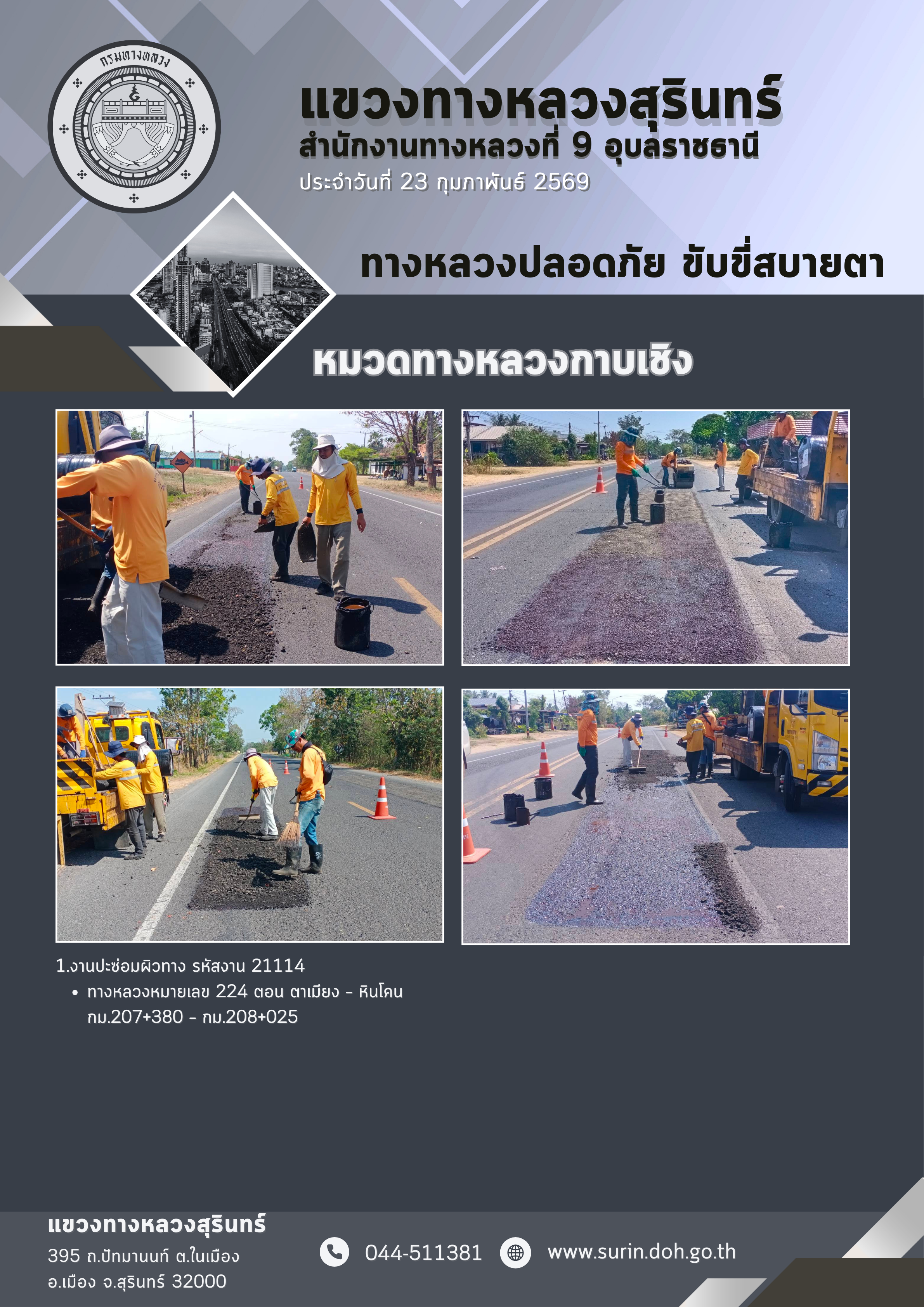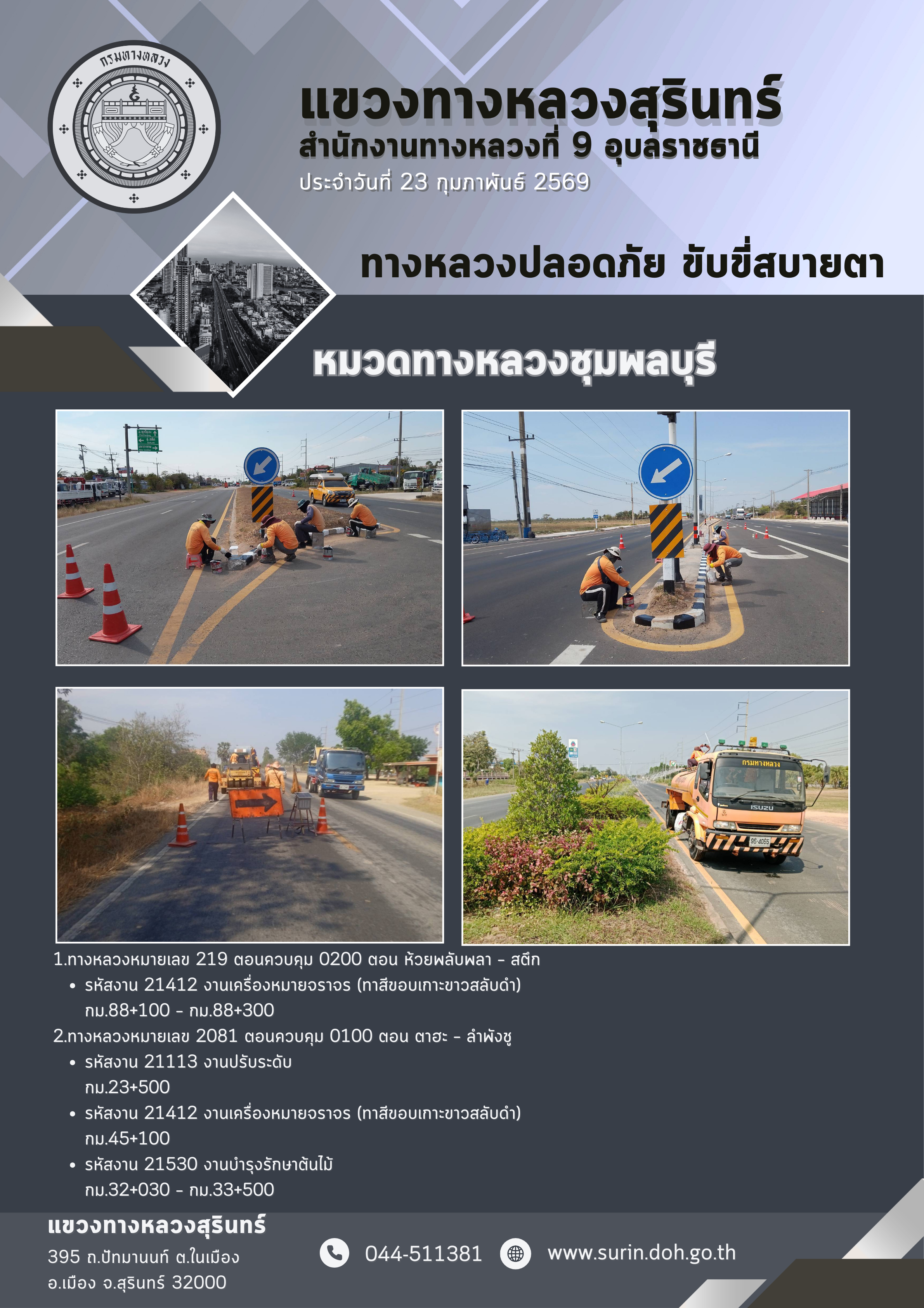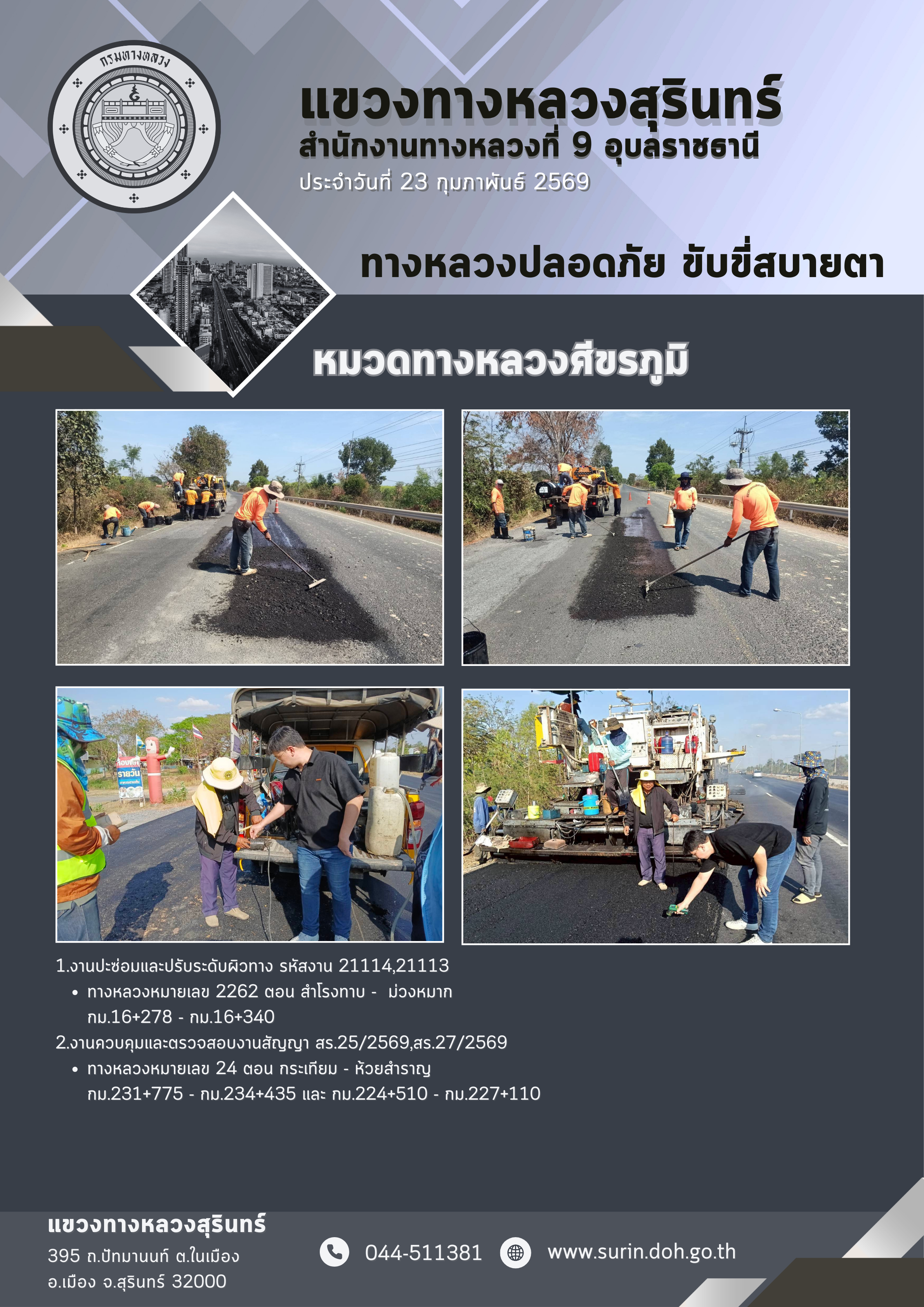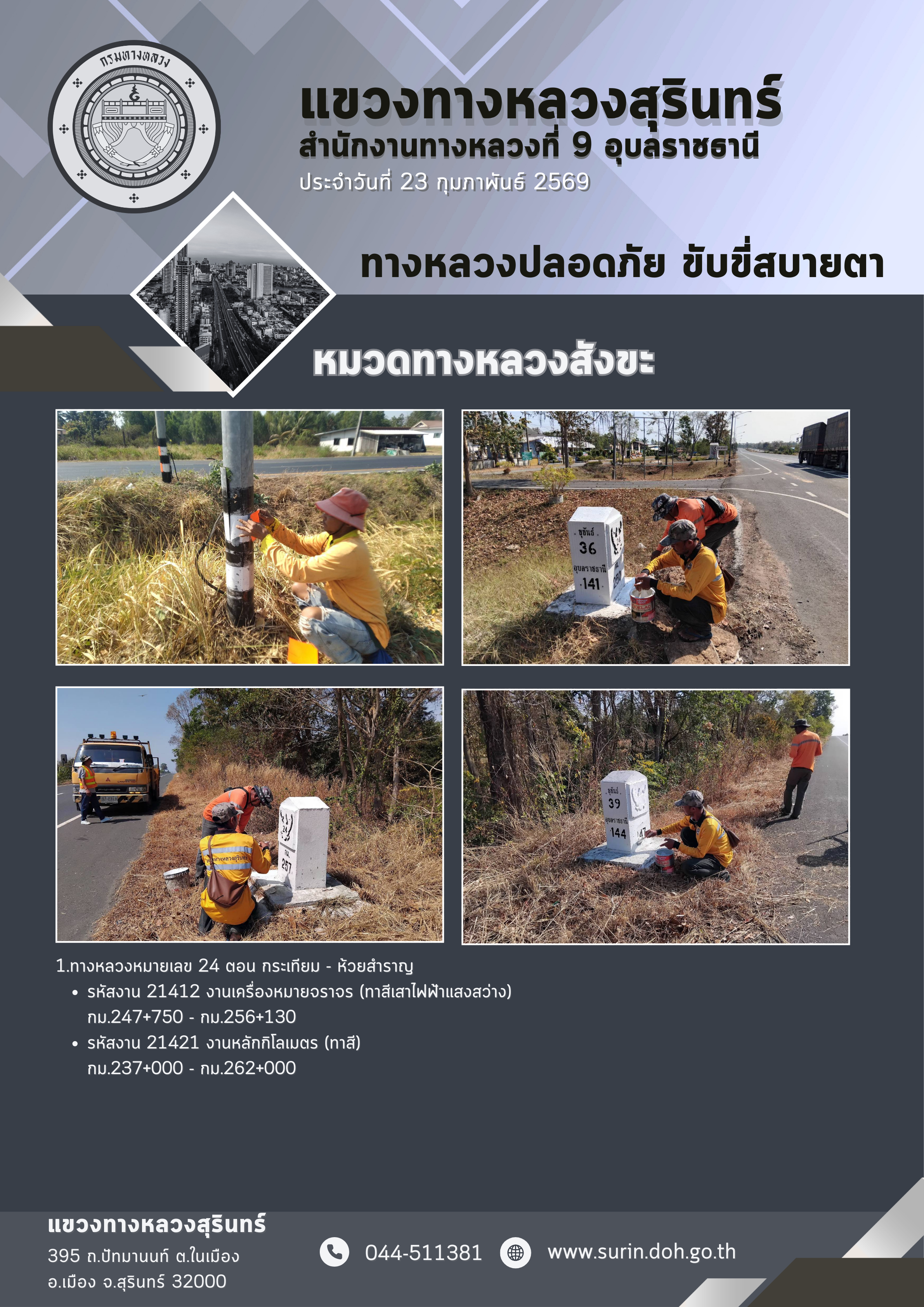 ทางหลวงปลอดภัย ขับขี่สบายตา 23 กุมภาพันธ์ 2569