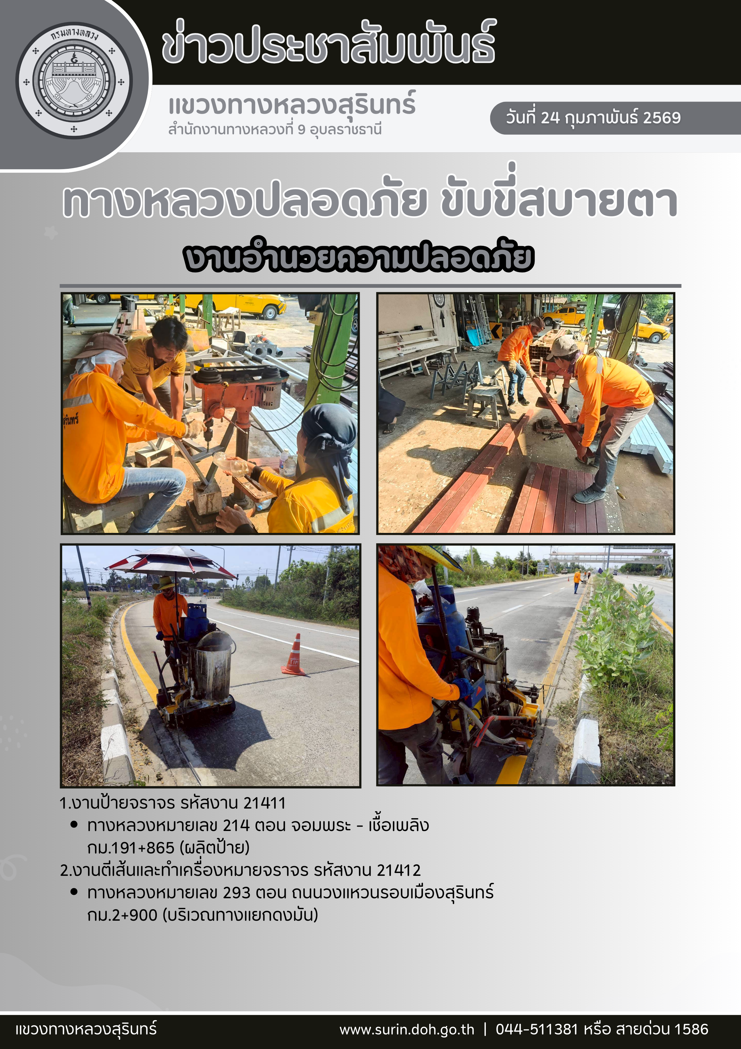 ข้อมูลข่าว : ทางหลวงปลอดภัย ขับขี่สบายตา 24 กุมภาพันธ์ 2569