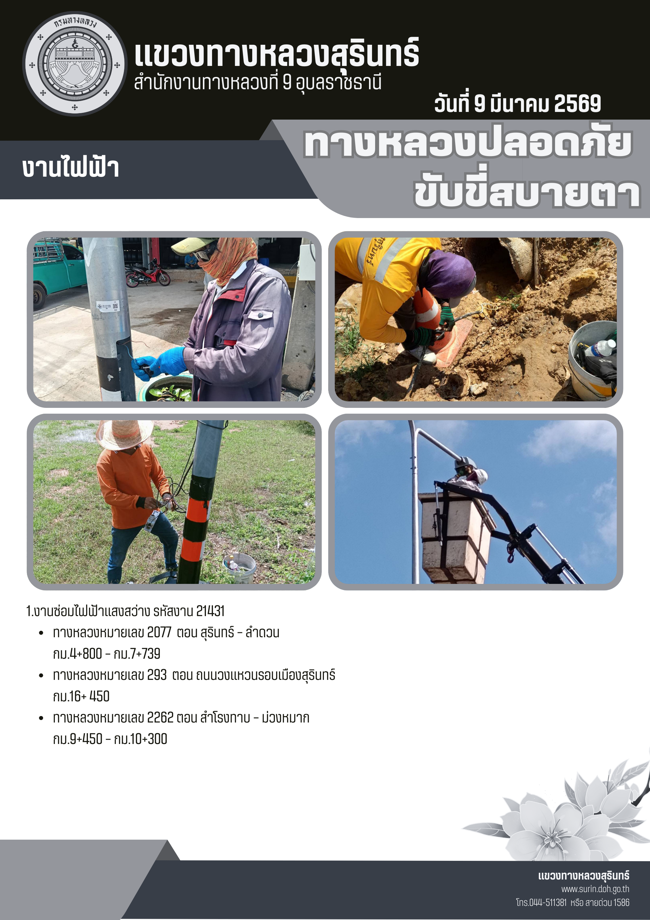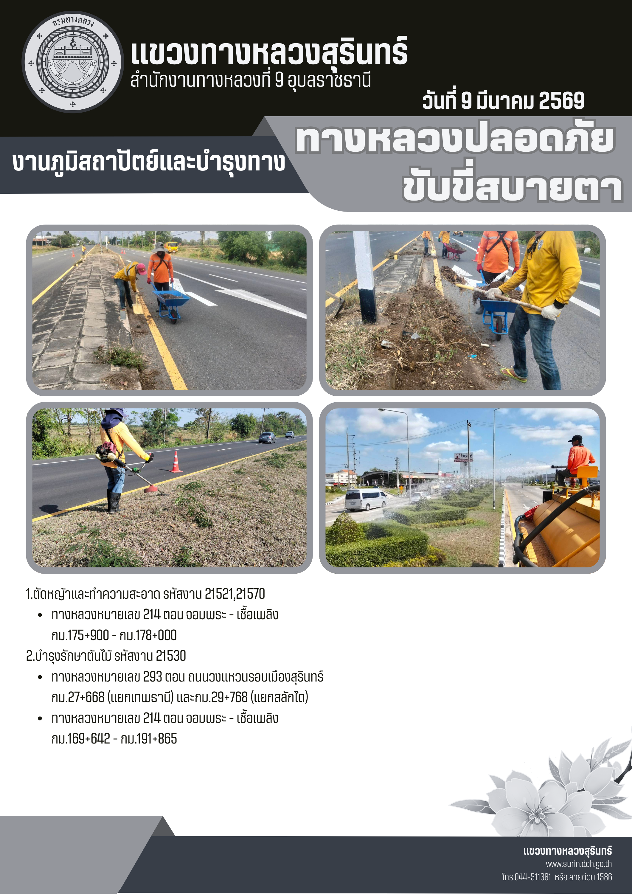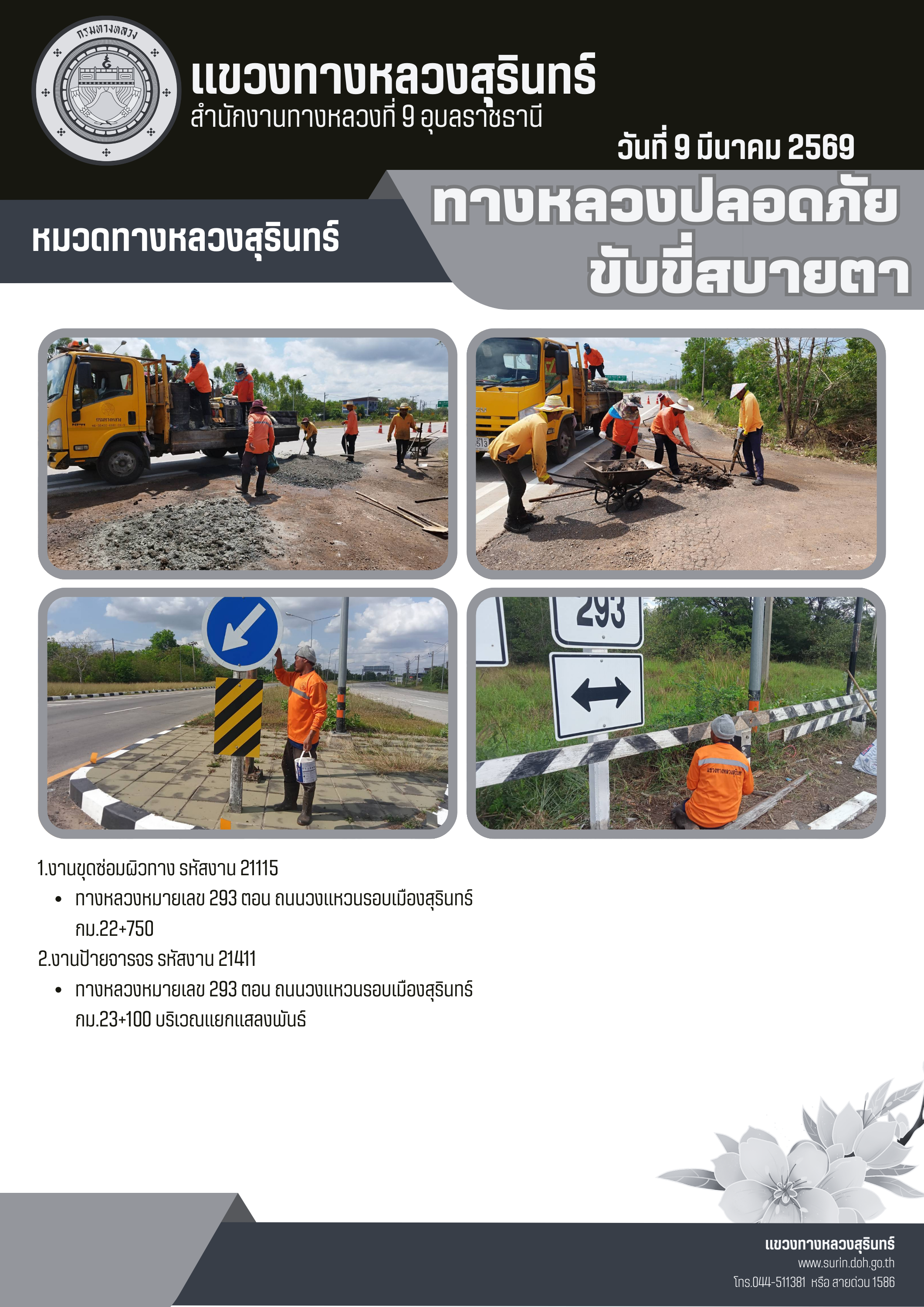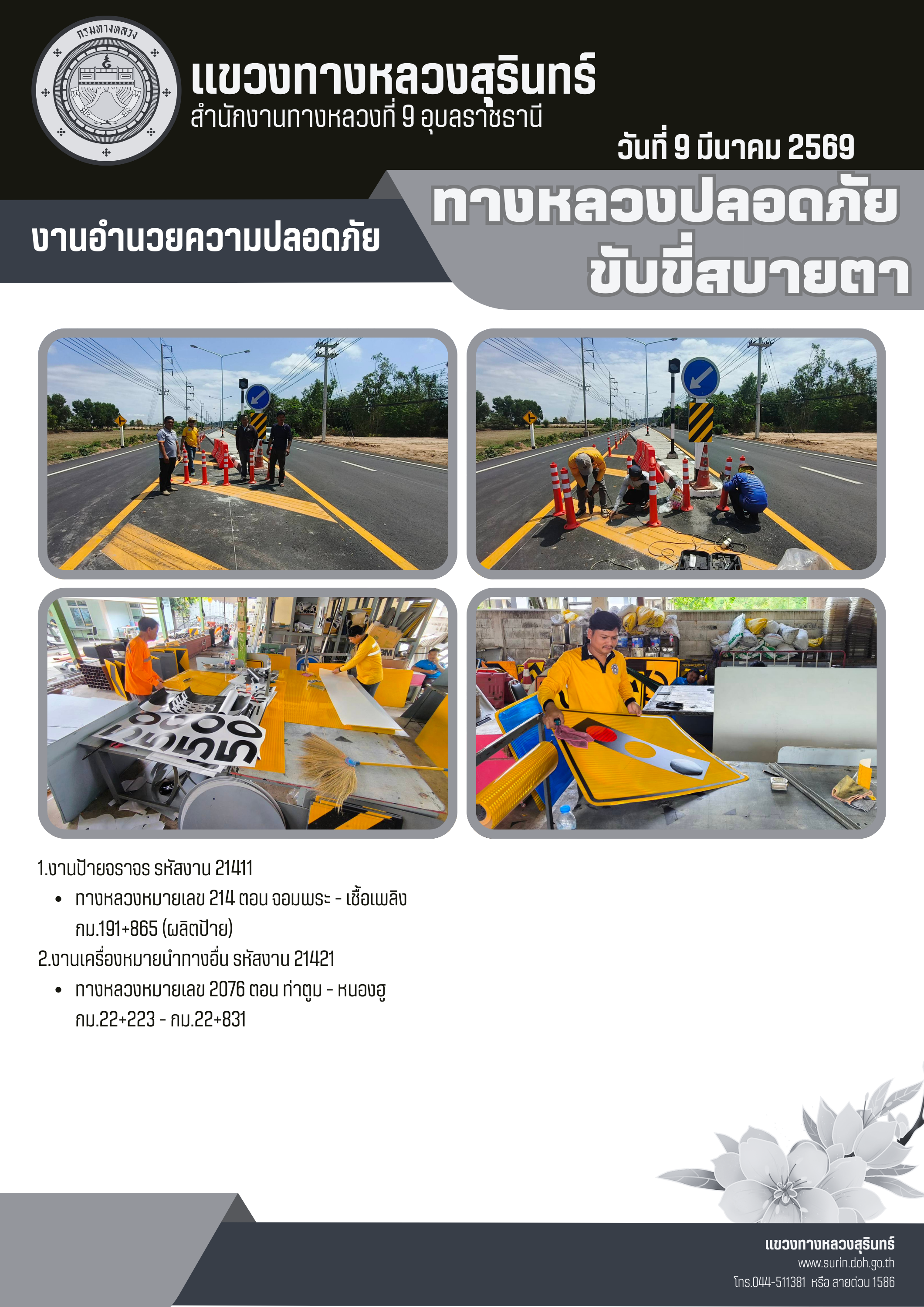 ทางหลวงปลอดภัย ขับขี่สบายตา 9 มีนาคม 2569