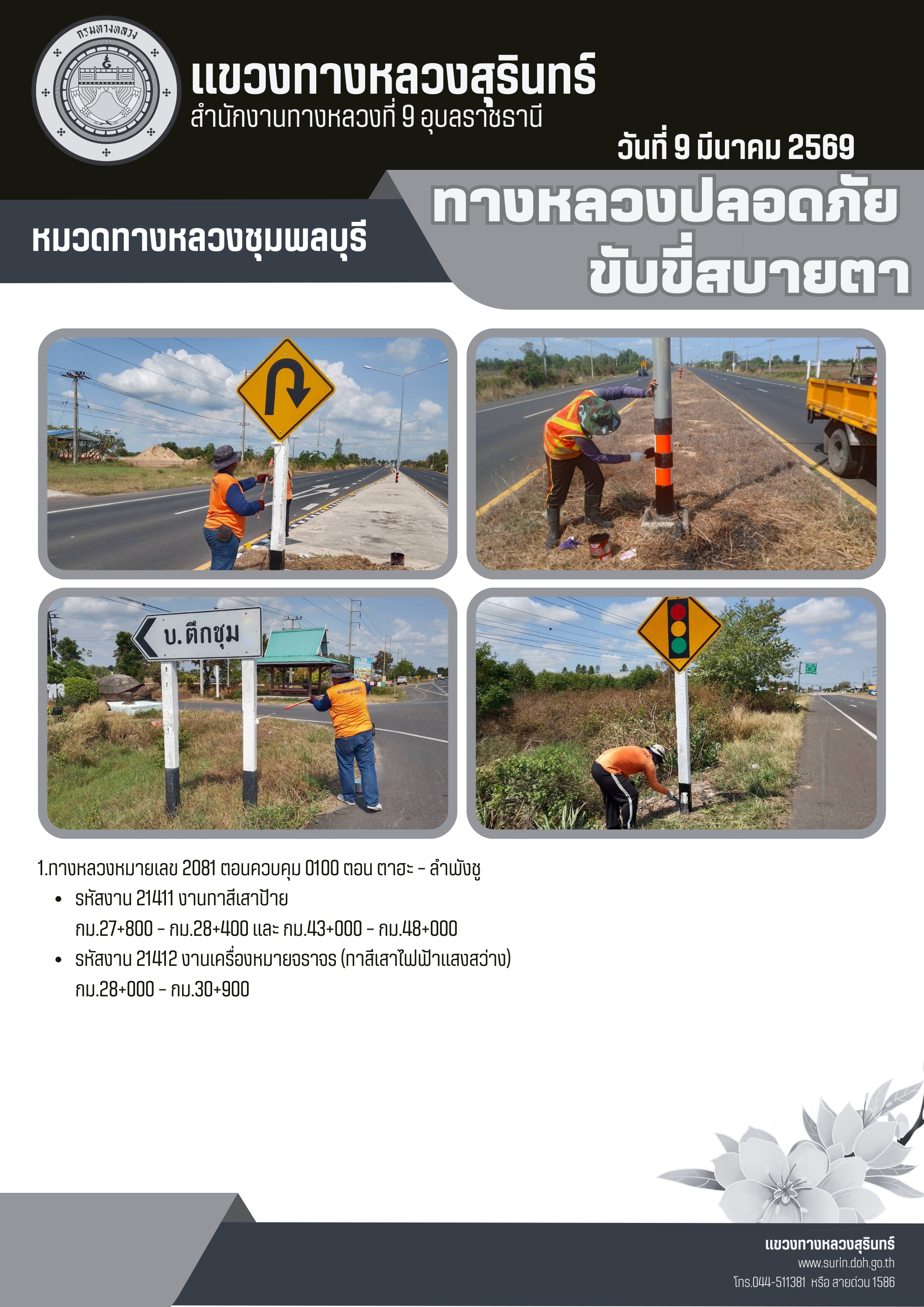 ข้อมูลข่าว : ทางหลวงปลอดภัย ขับขี่สบายตา 9 มีนาคม 2569