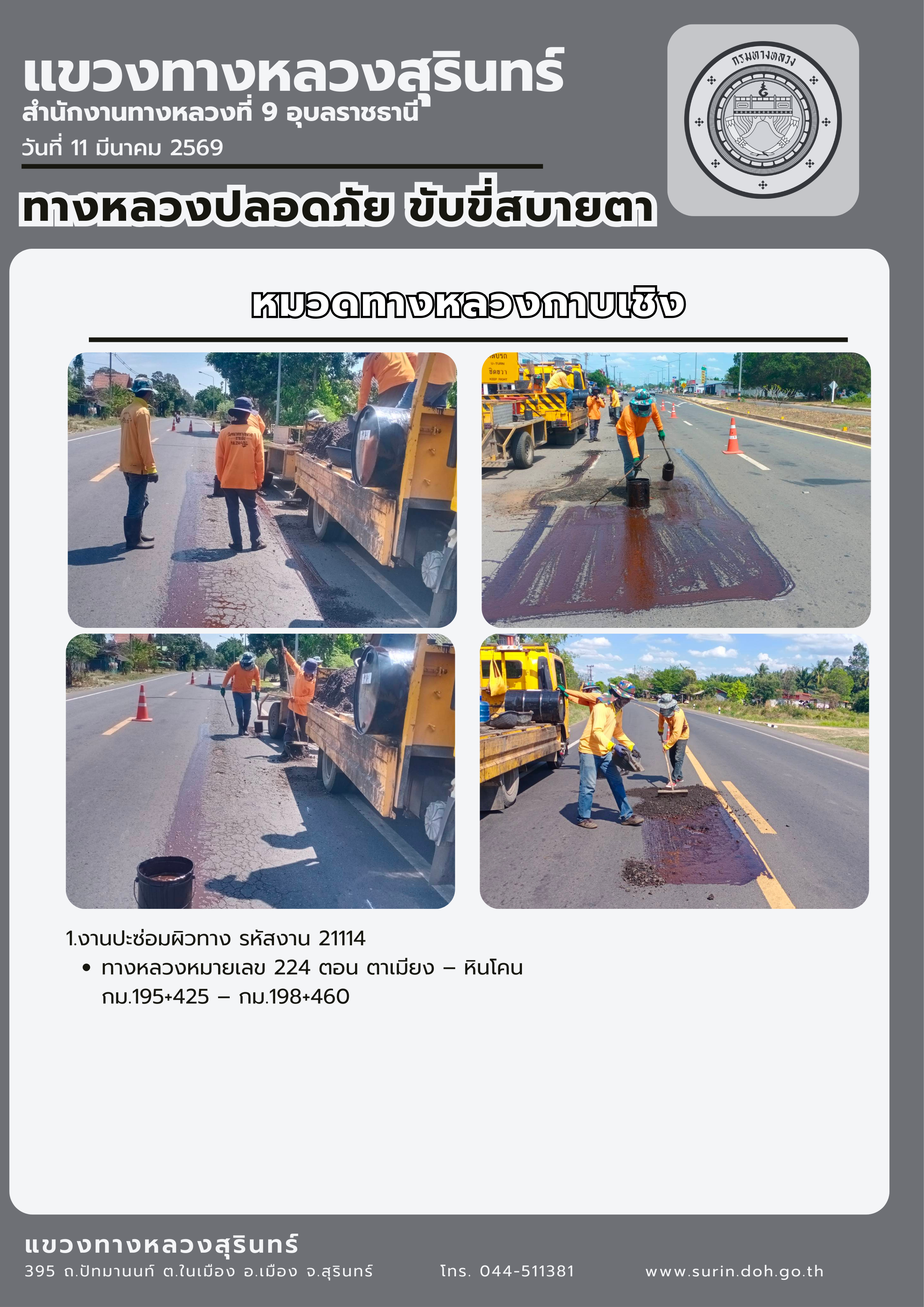 ข้อมูลข่าว : ทางหลวงปลอดภัย ขับขี่สบายตา 11 มีนาคม 2569