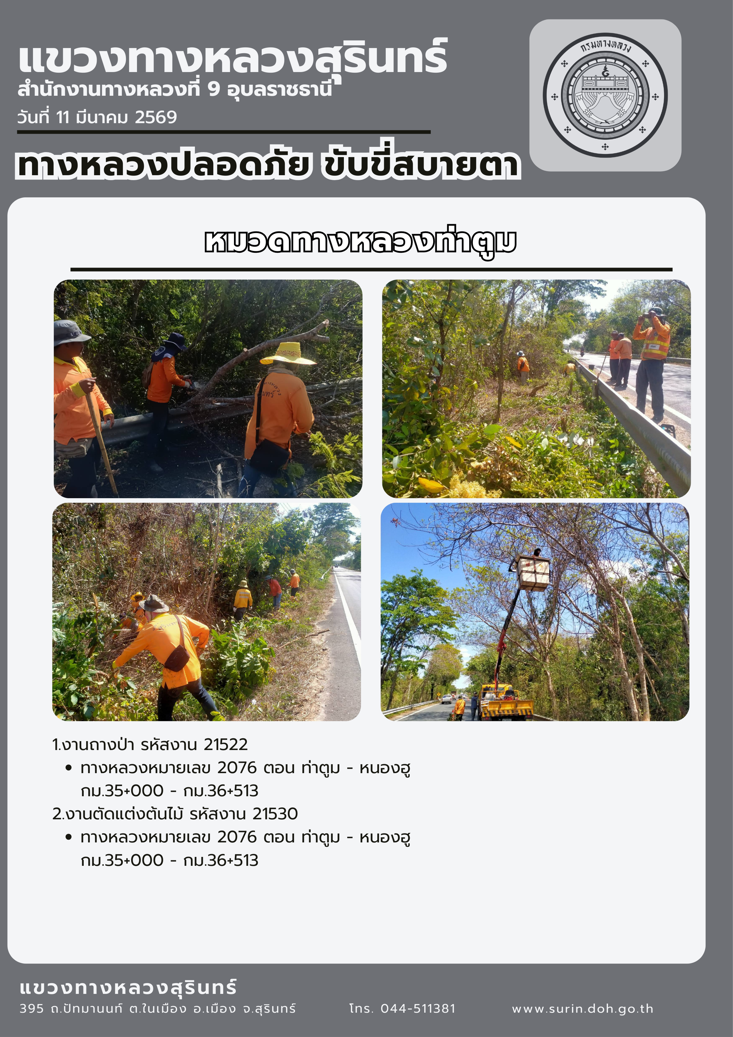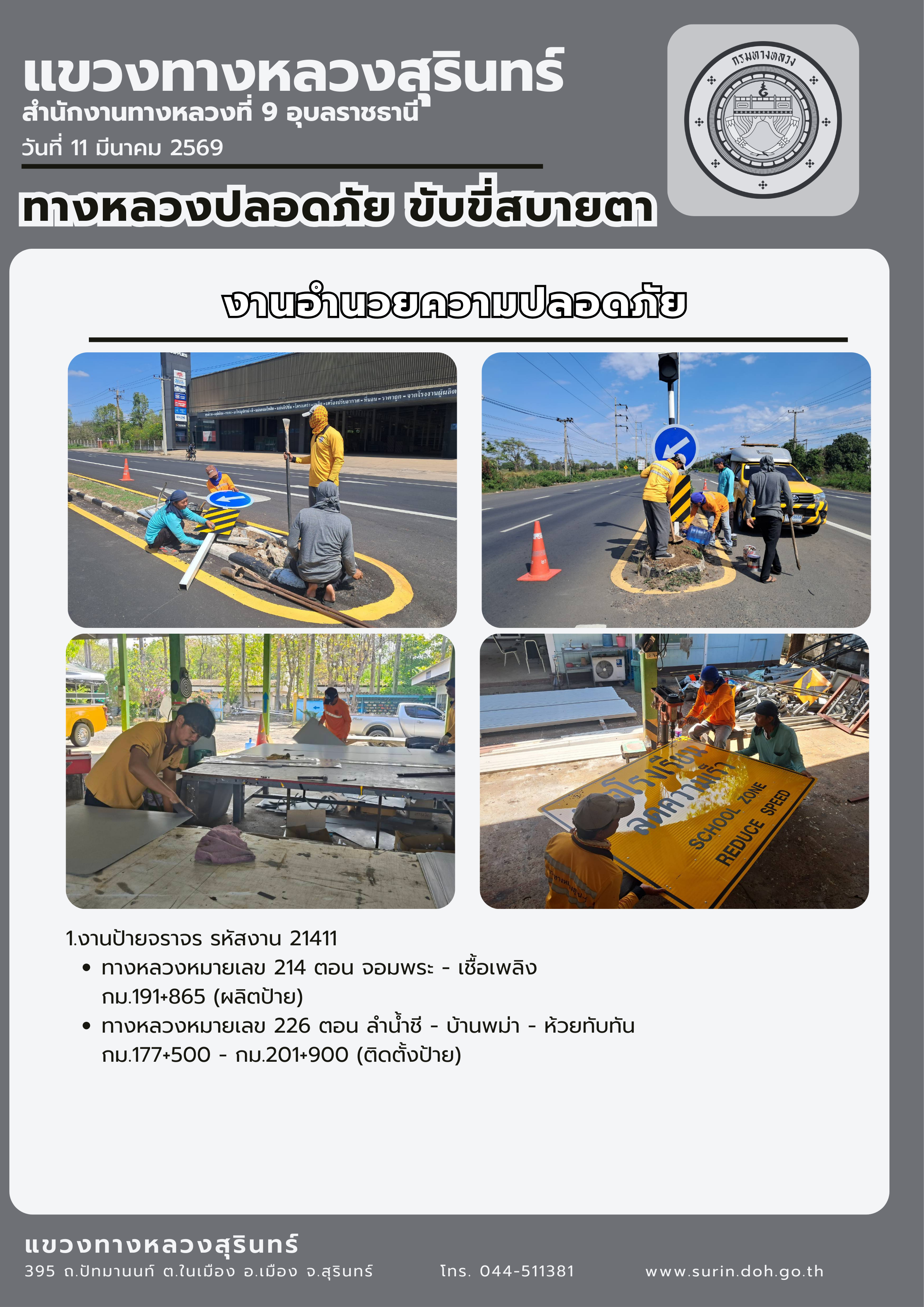 ทางหลวงปลอดภัย ขับขี่สบายตา 11 มีนาคม 2569