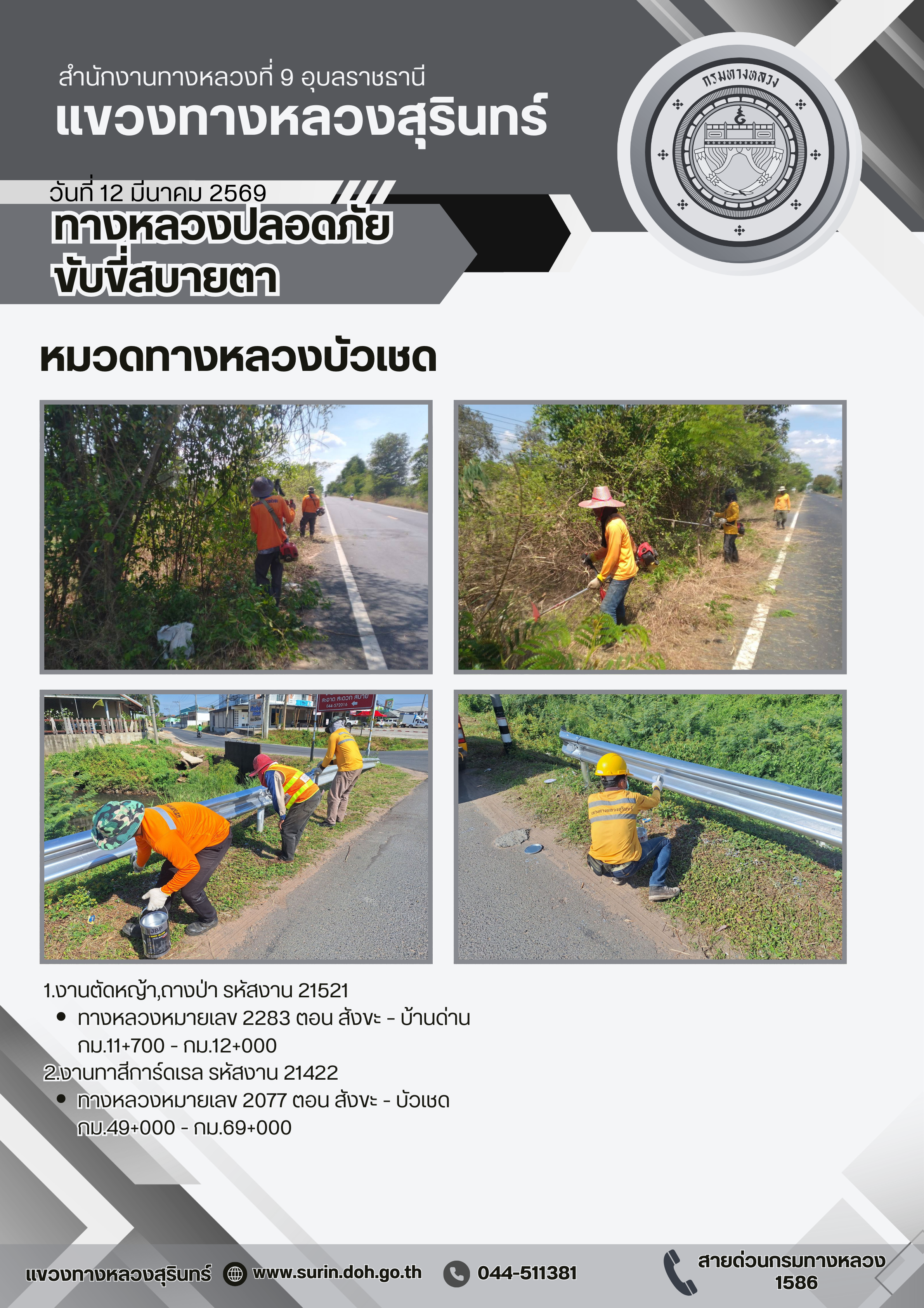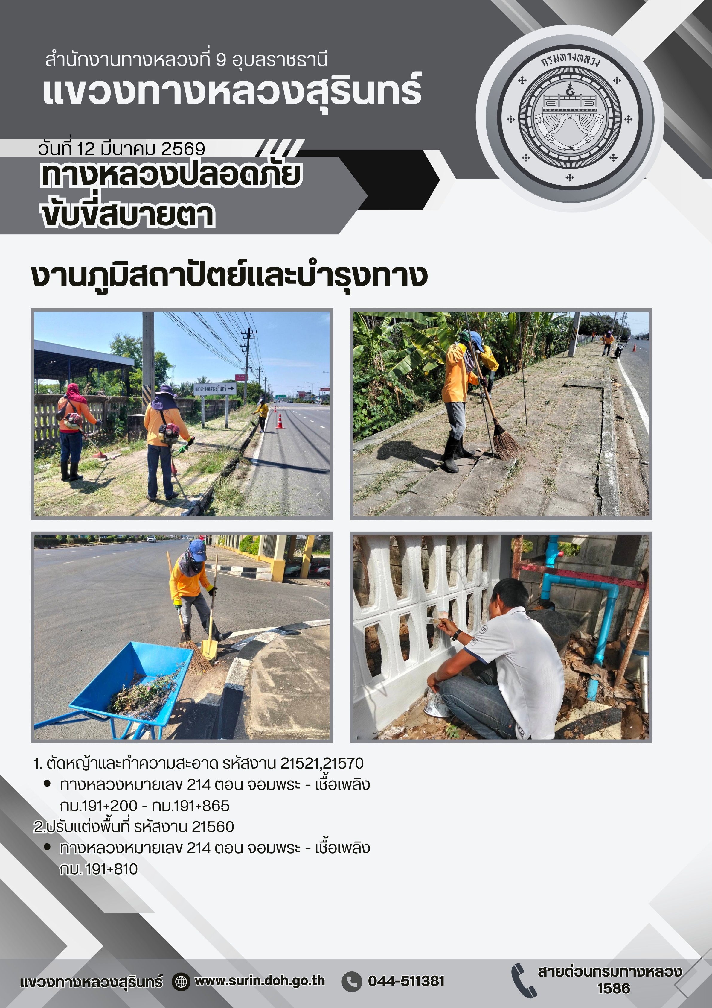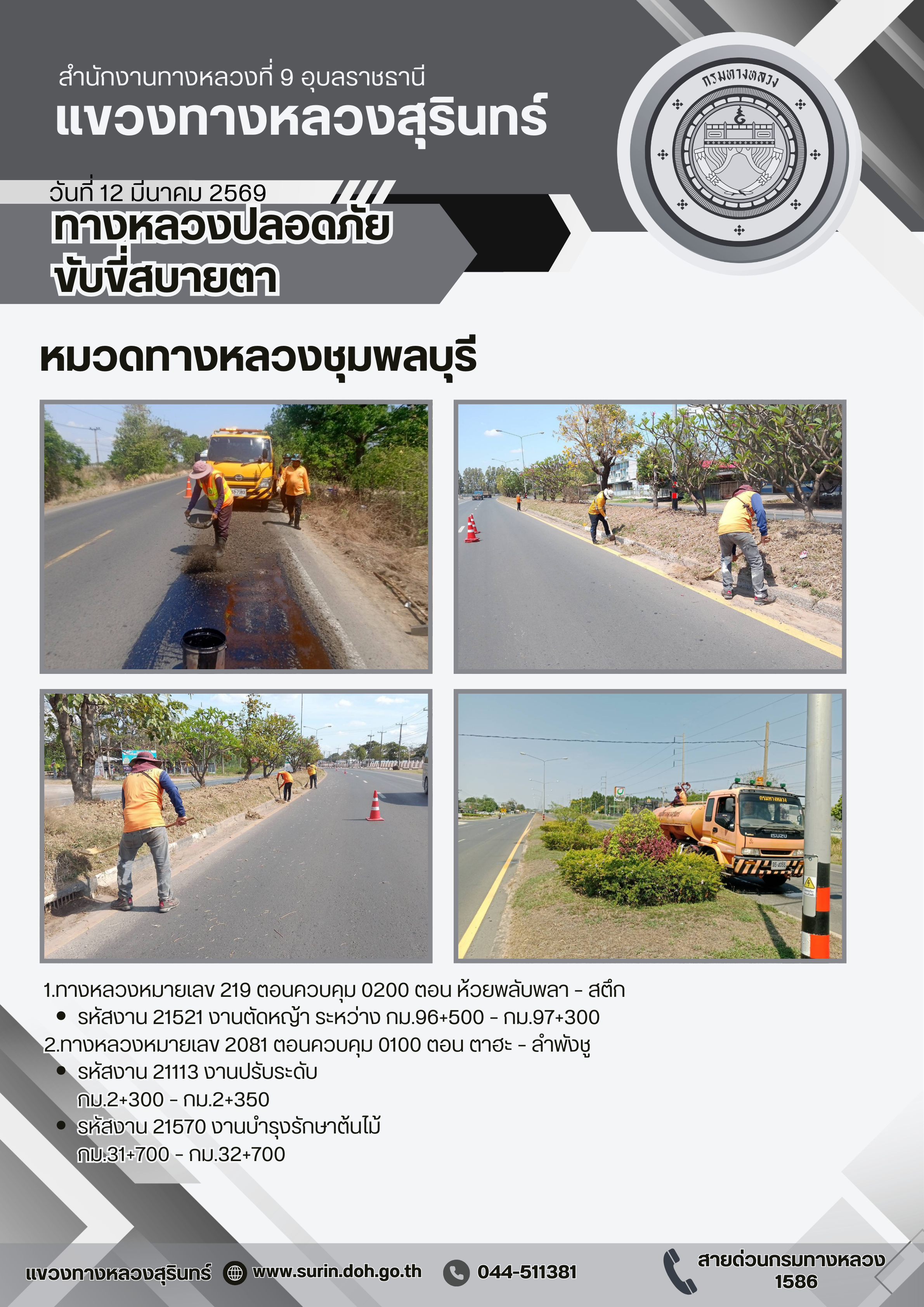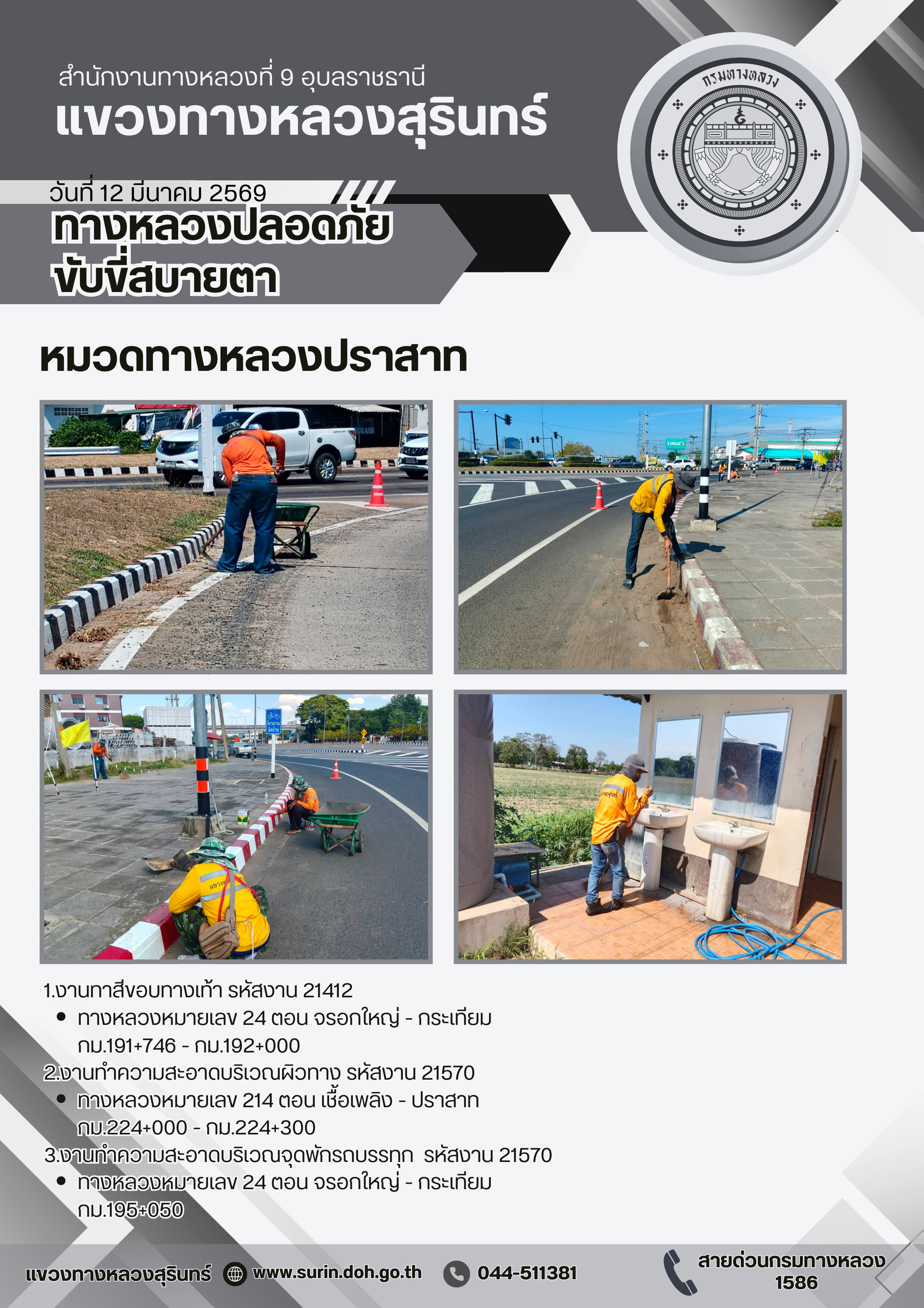 ทางหลวงปลอดภัย ขับขี่สบายตา 12 มีนาคม 2569