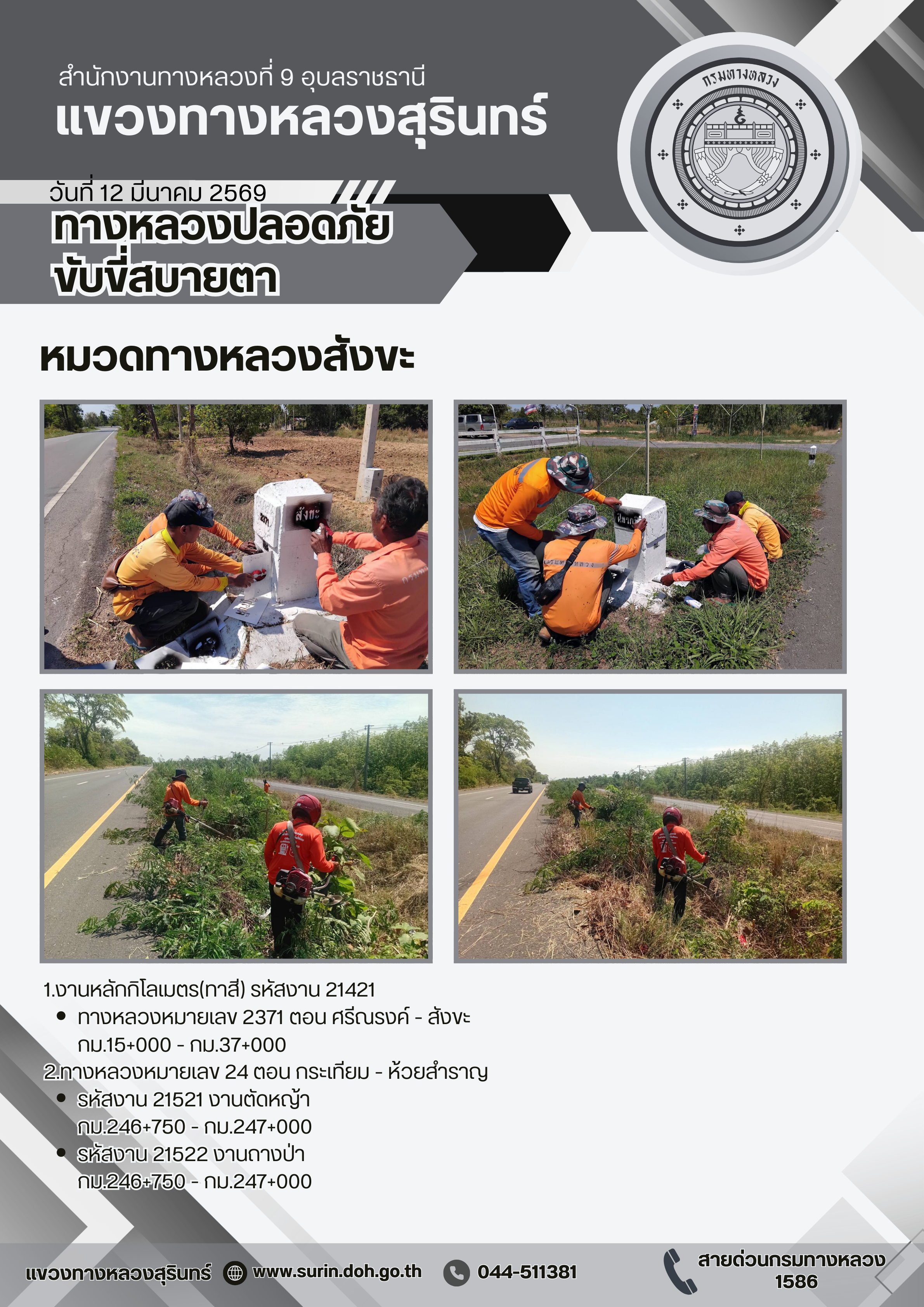 ข้อมูลข่าว : ทางหลวงปลอดภัย ขับขี่สบายตา 12 มีนาคม 2569