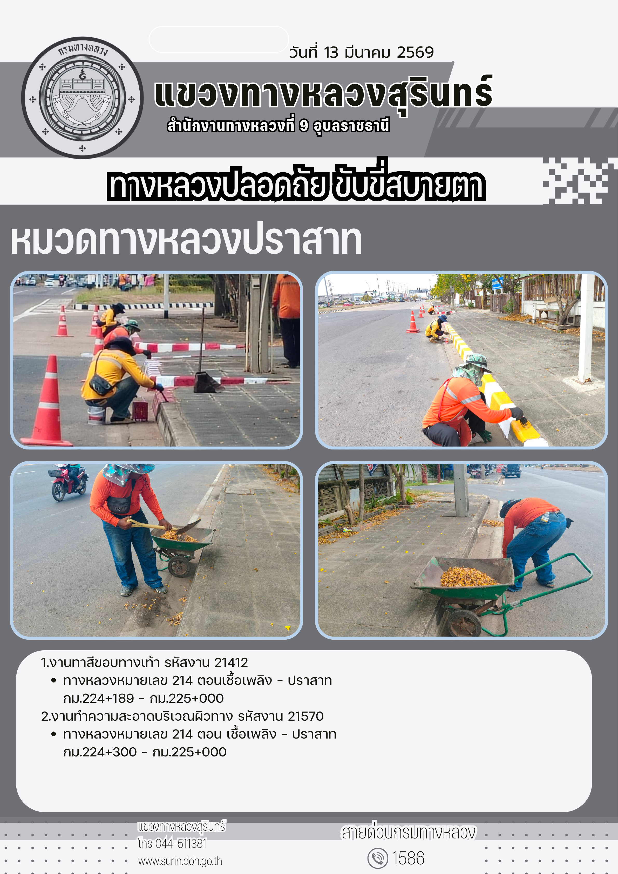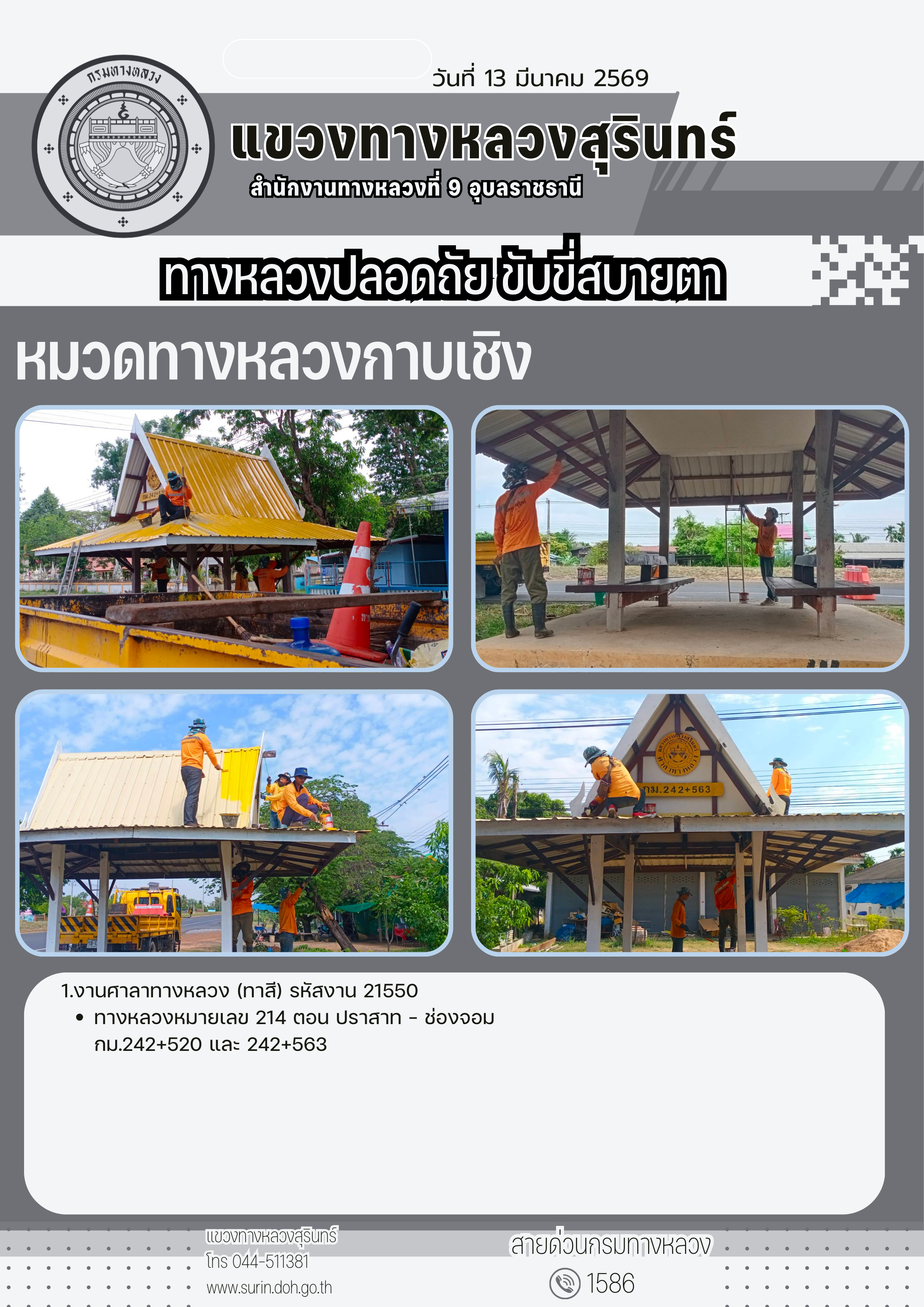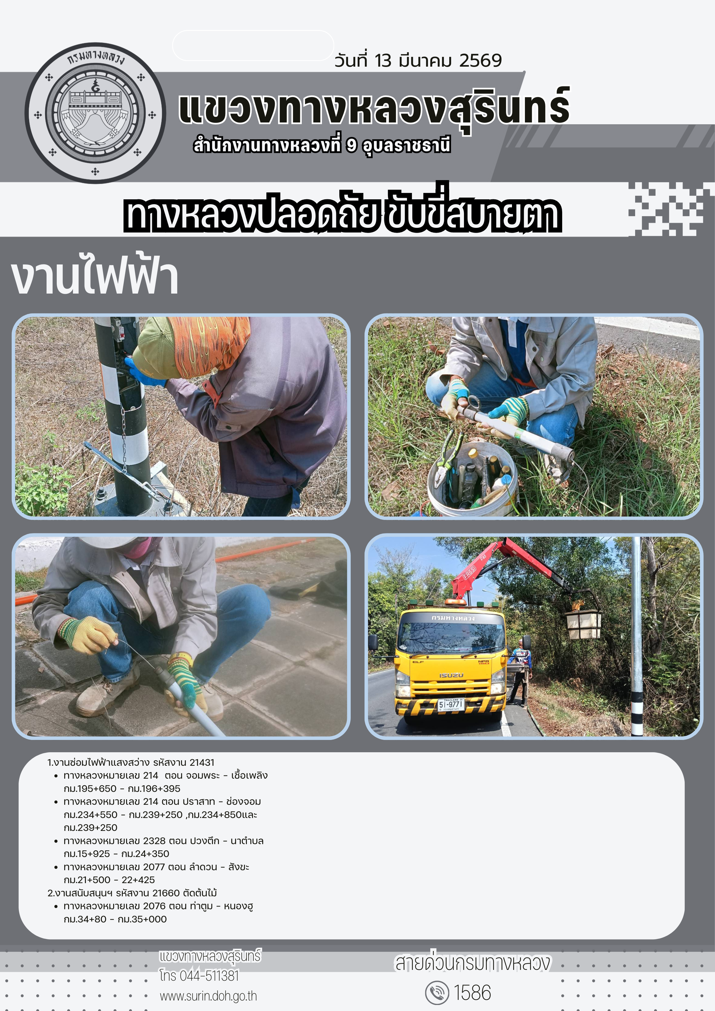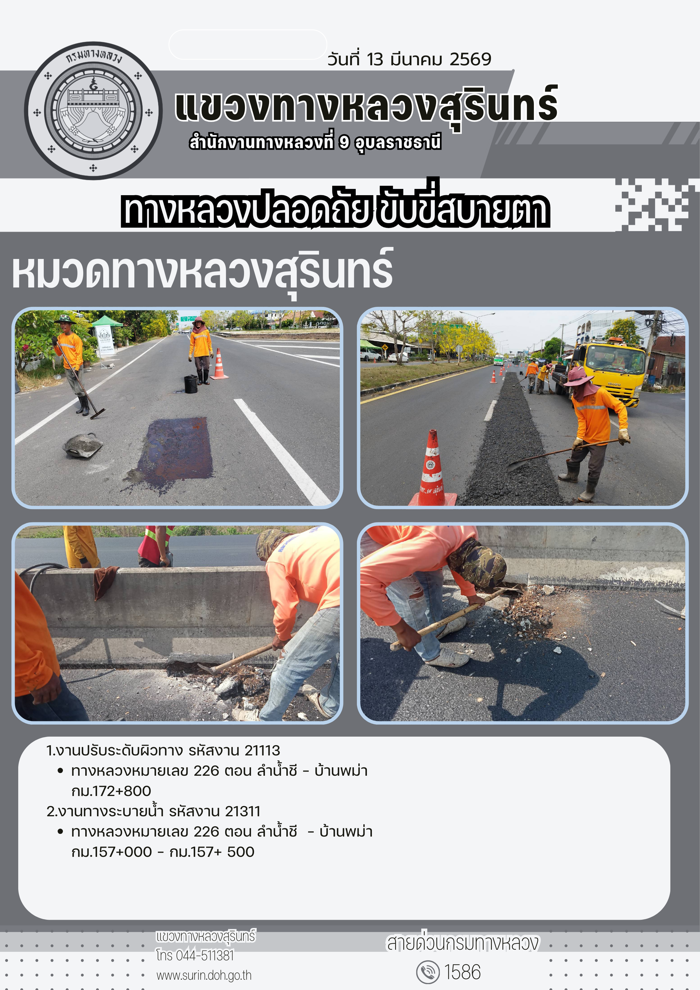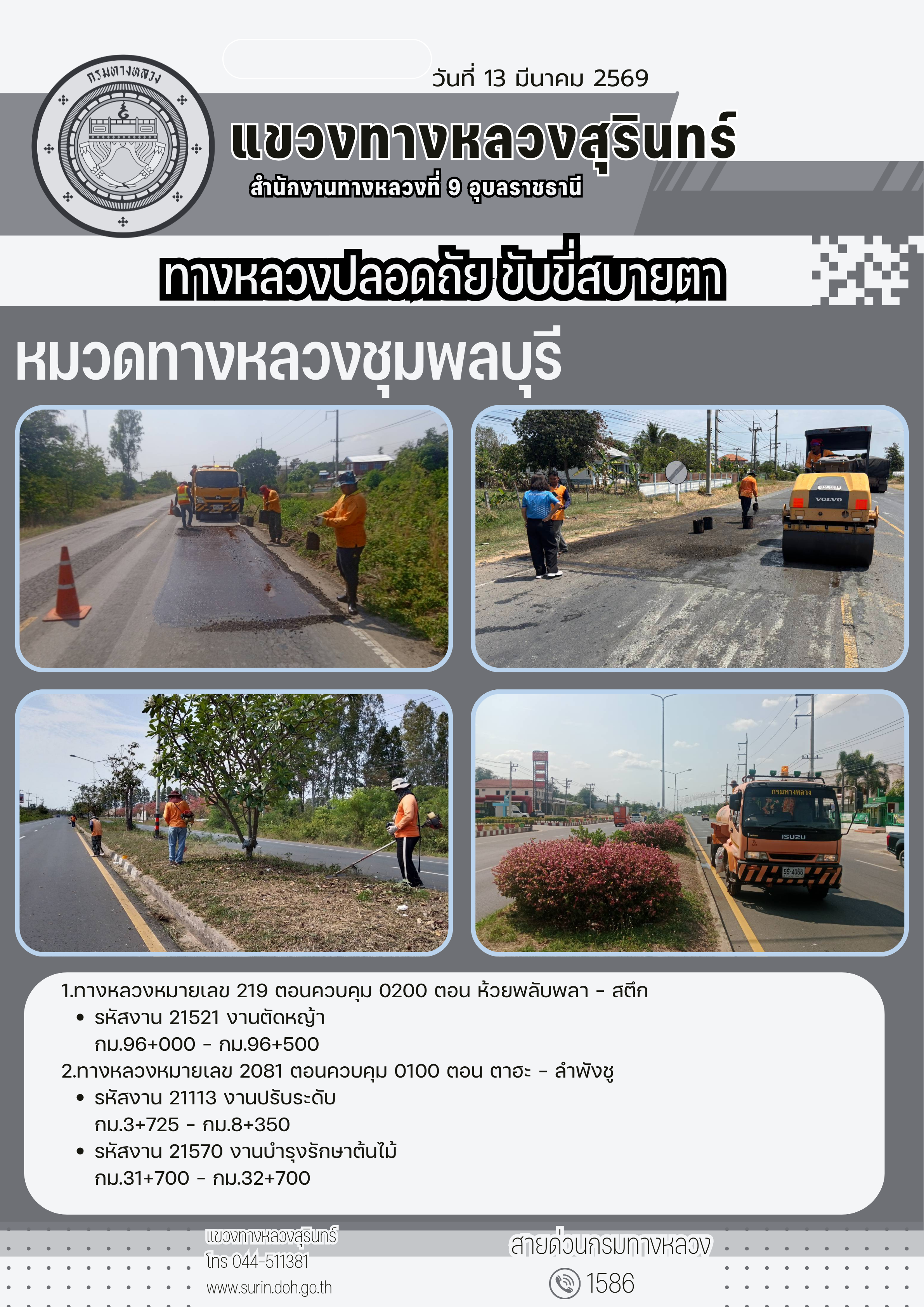 ข้อมูลข่าว : ทางหลวงปลอดภัย ขับขี่สบายตา 13 มีนาคม 2569