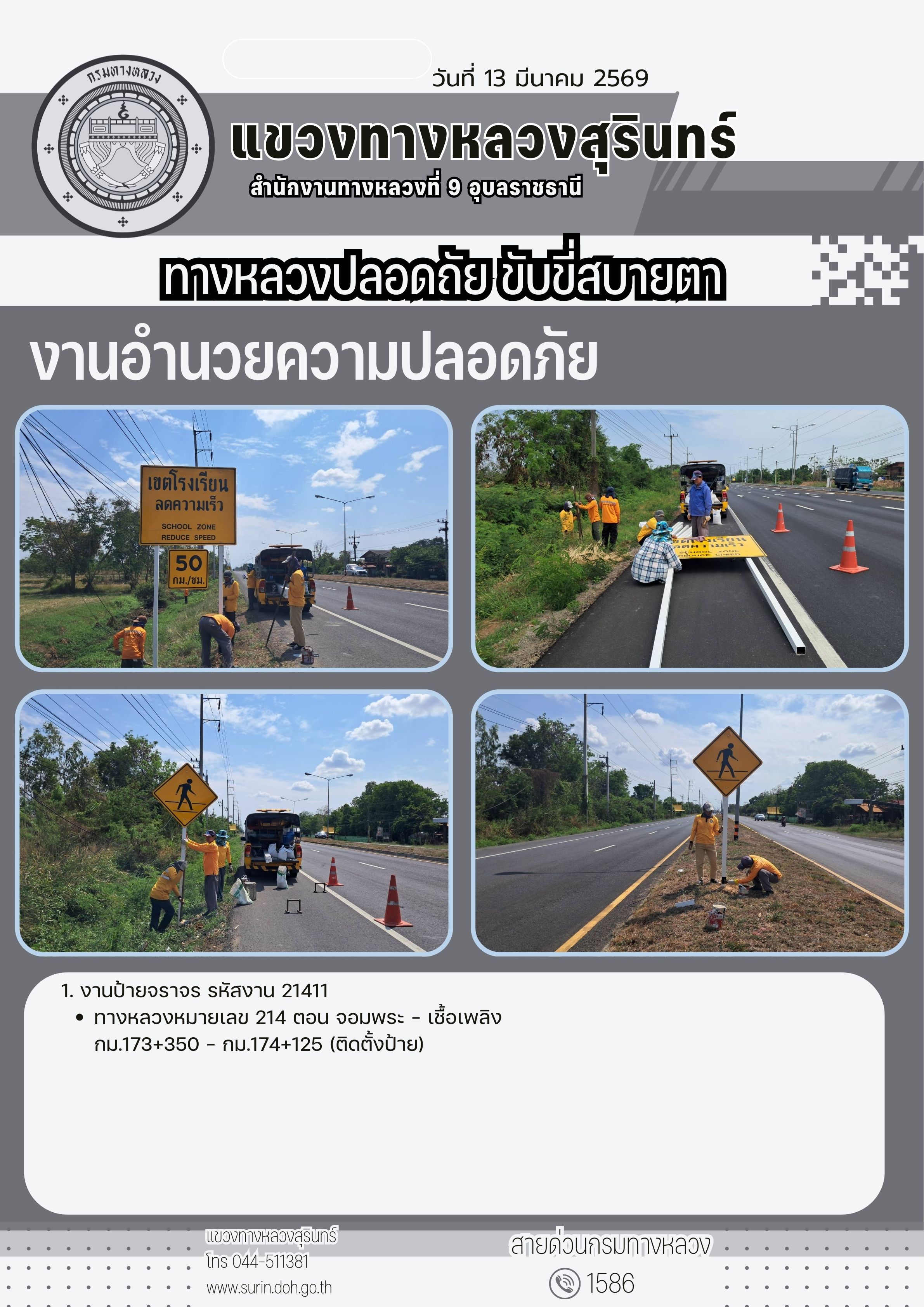 ทางหลวงปลอดภัย ขับขี่สบายตา 13 มีนาคม 2569