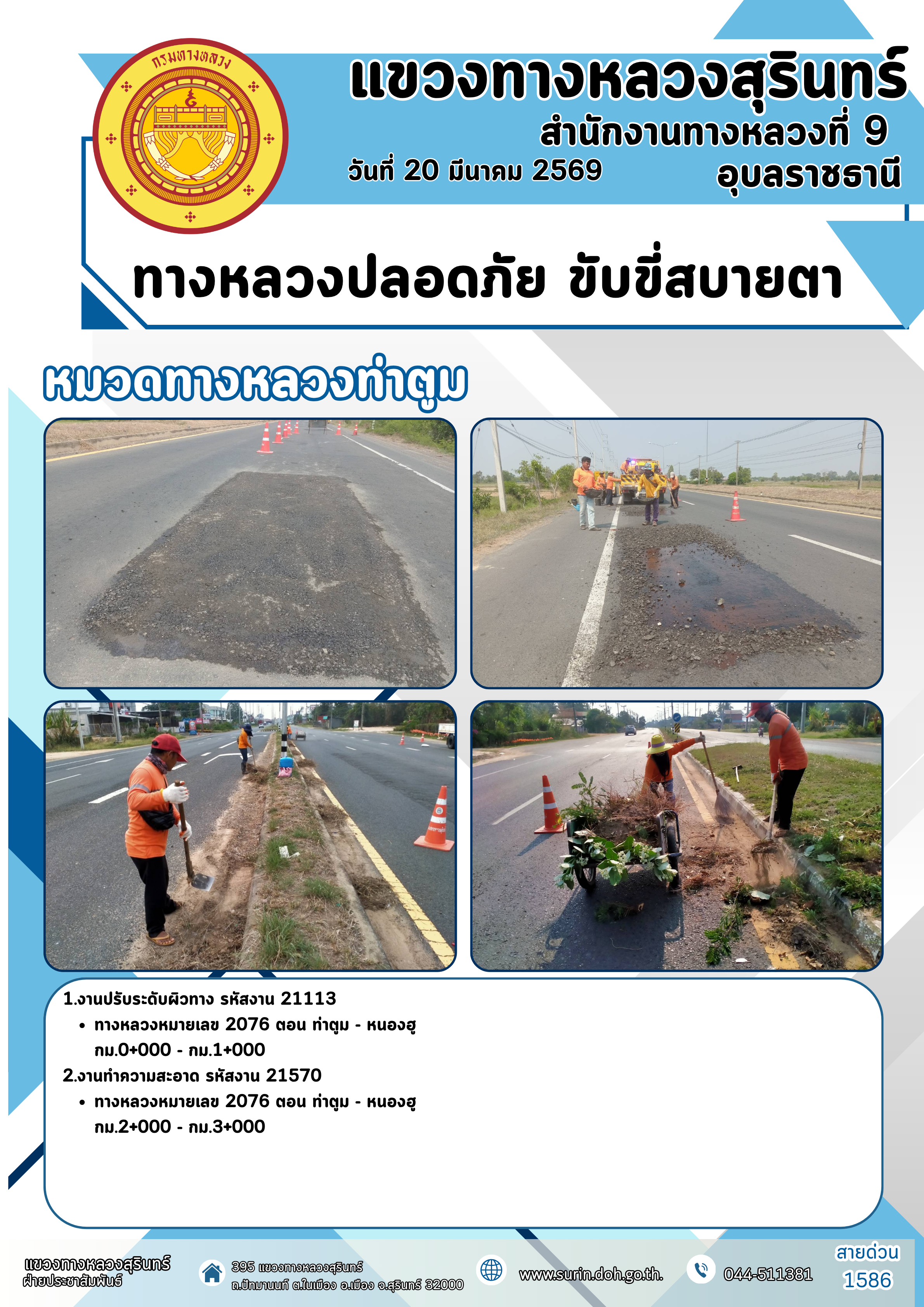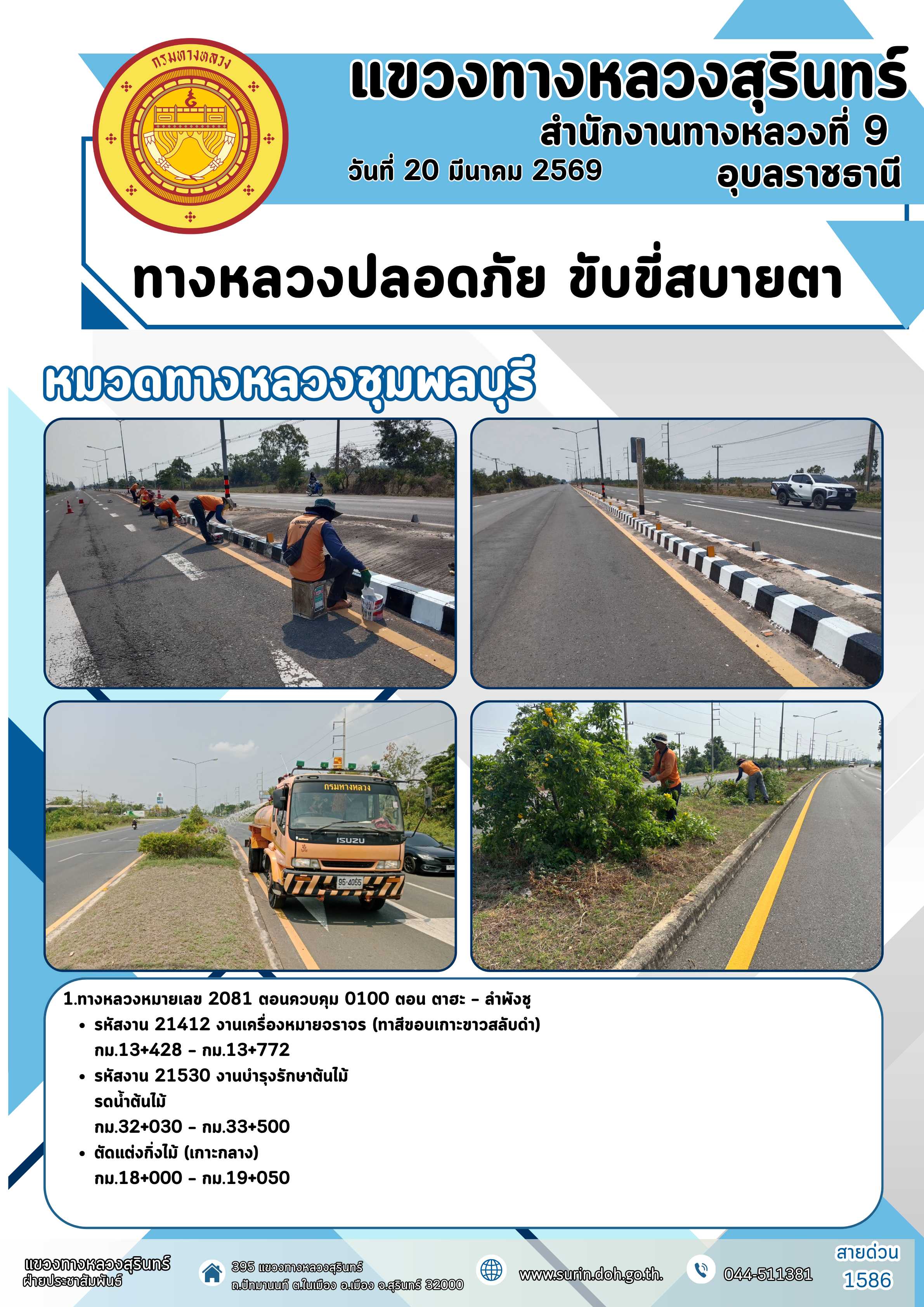 ทางหลวงปลอดภัย ขับขี่สบายตา 20 มีนาคม 2569