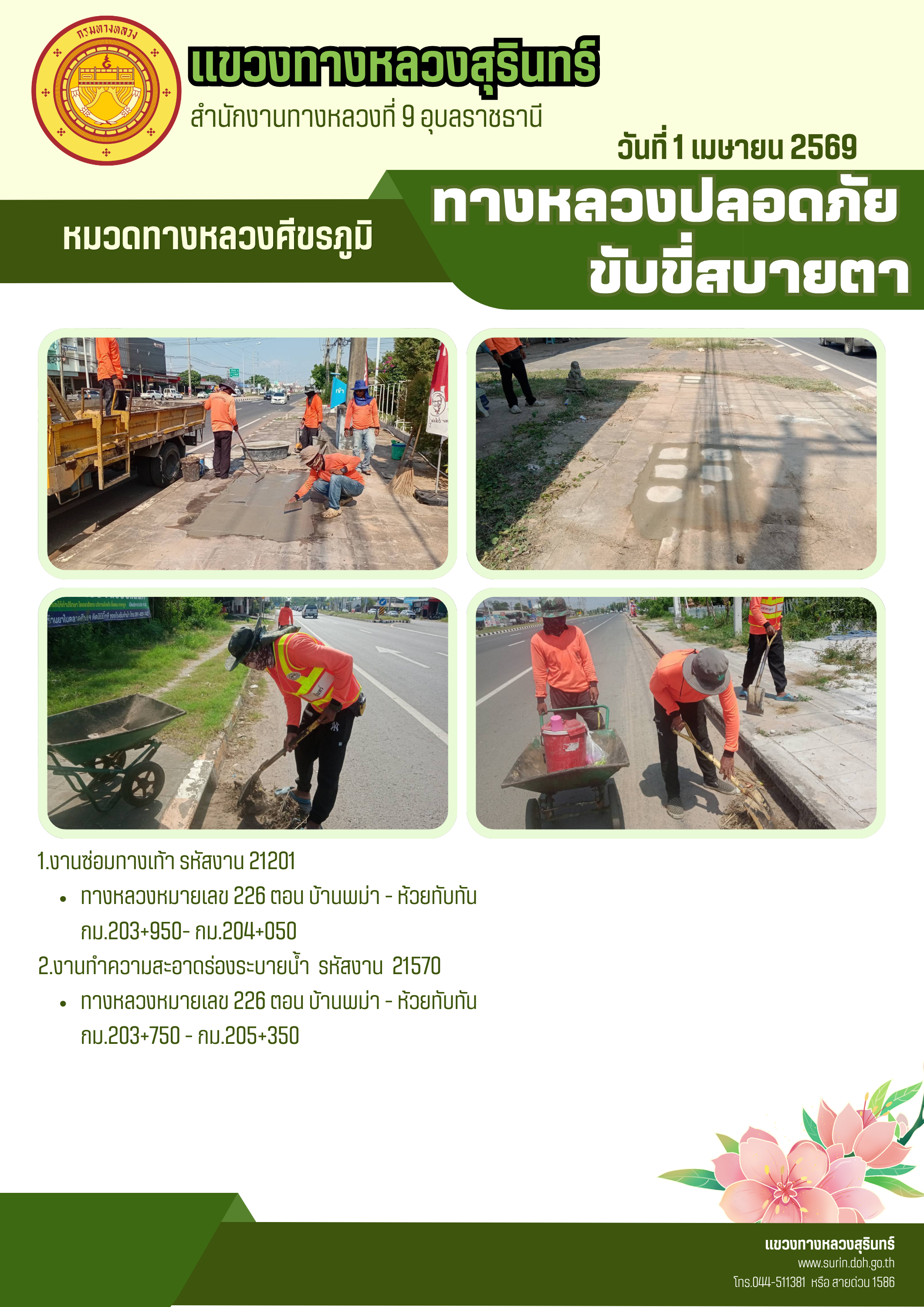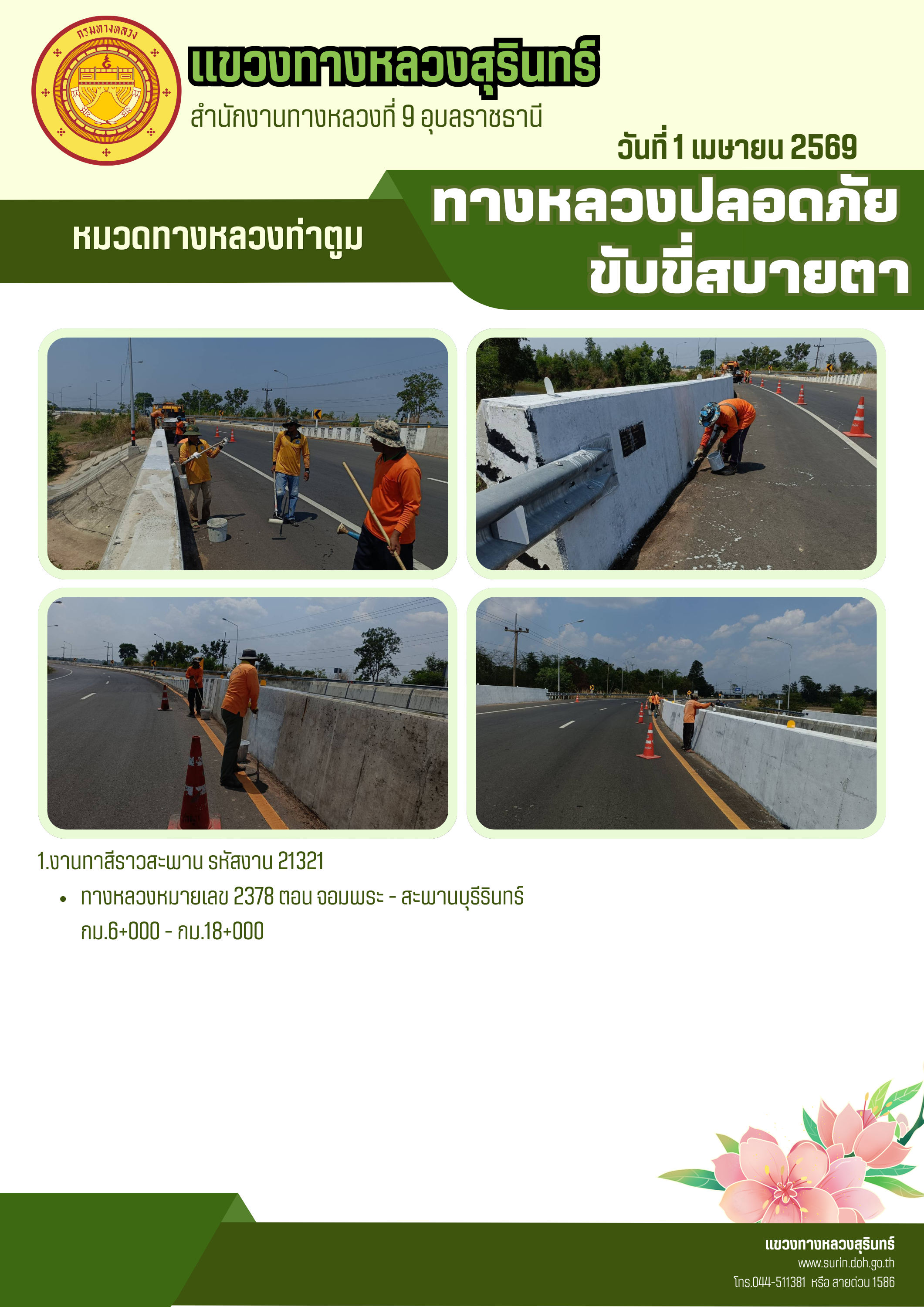 ทางหลวงปลอดภัย ขับขี่สบายตา 1 เมษายน 2569