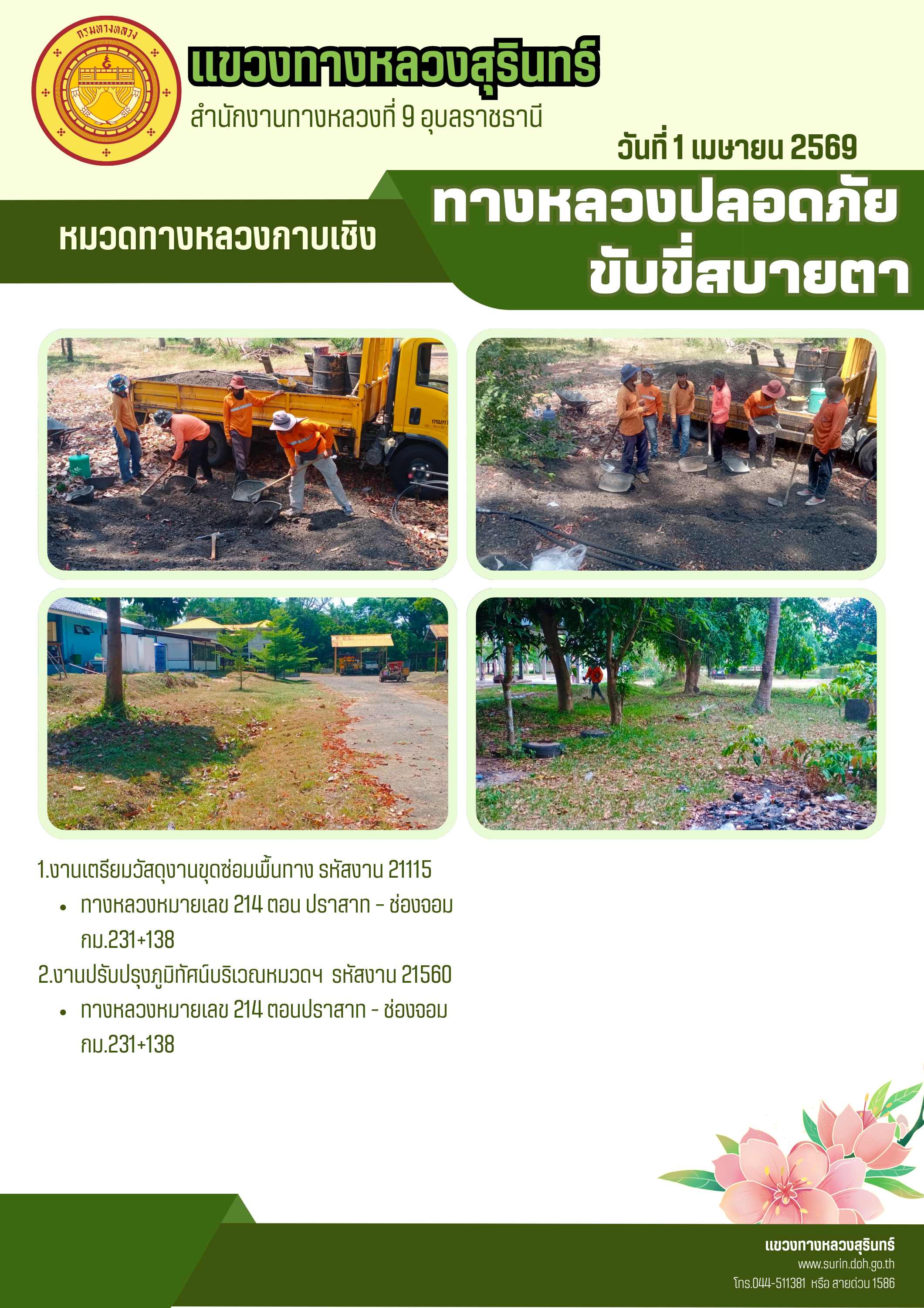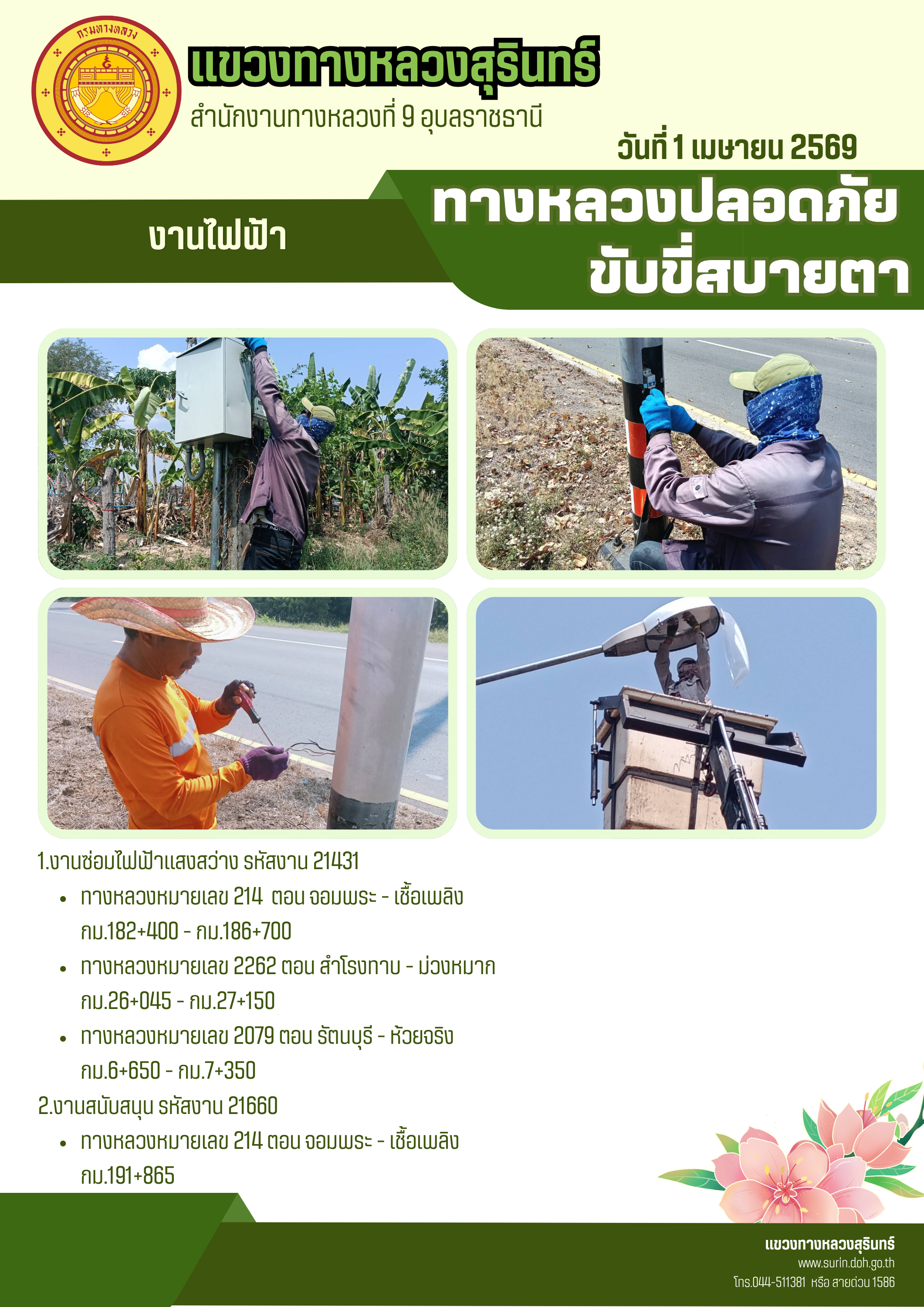 ข้อมูลข่าว : ทางหลวงปลอดภัย ขับขี่สบายตา 1 เมษายน 2569