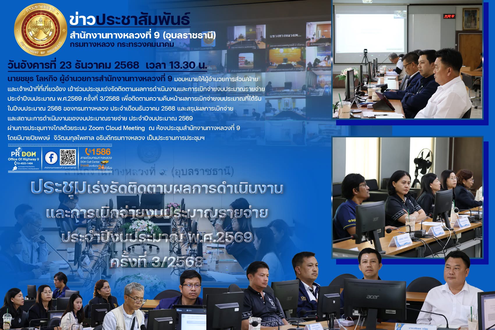 ประชุมเร่งรัดติดตามผลการดำเนินงานและการเบิกจ่ายงบประมาณรายจ่าย ประจำปีงบประมาณ พ.ศ.2569 ครั้งที่ 3/2568