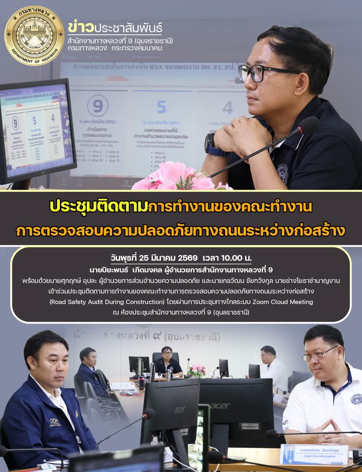 ประชุมติดตามการทำงานของคณะทำงานการตรวจสอบความปลอดภัยทางถนนระหว่างก่อสร้าง