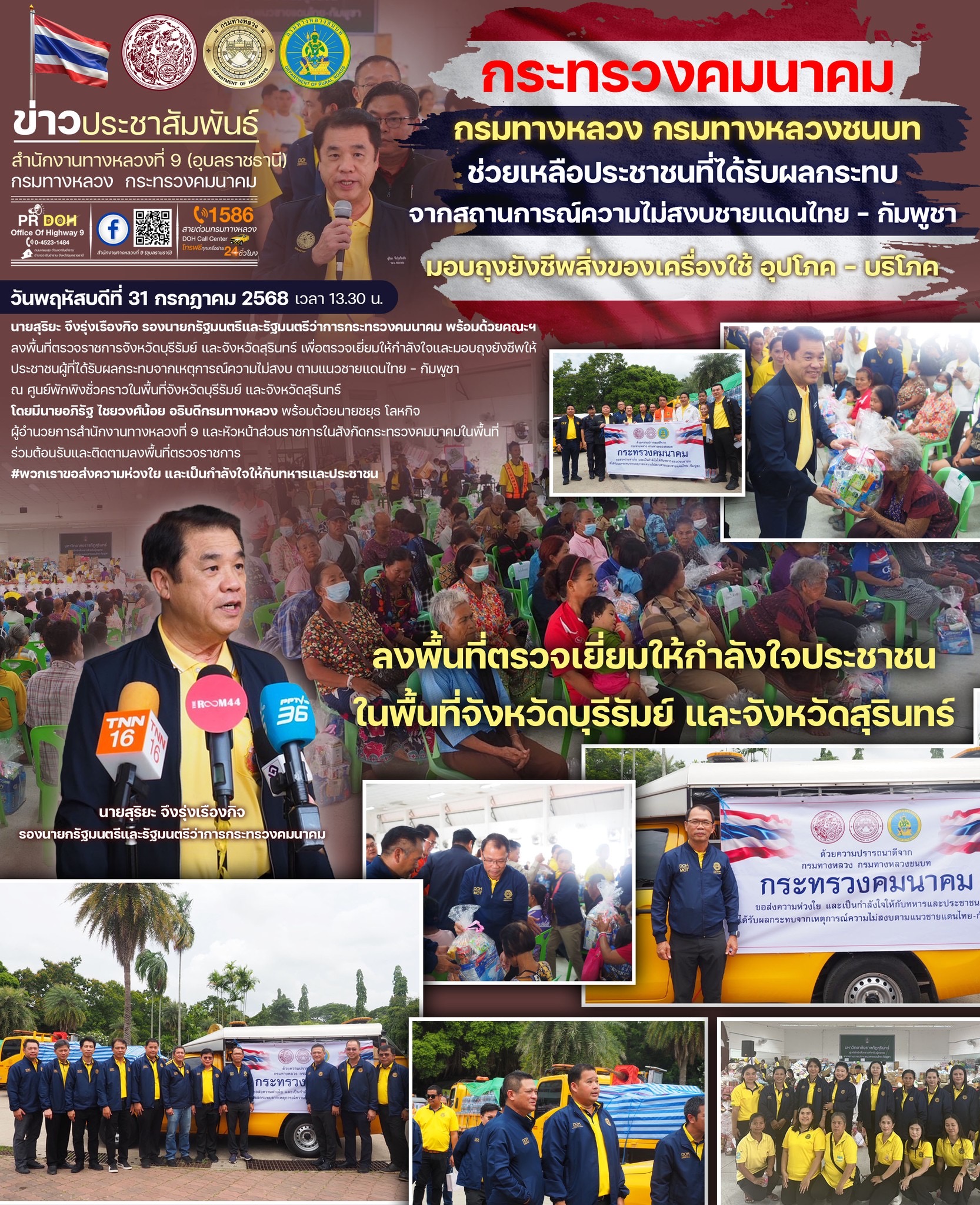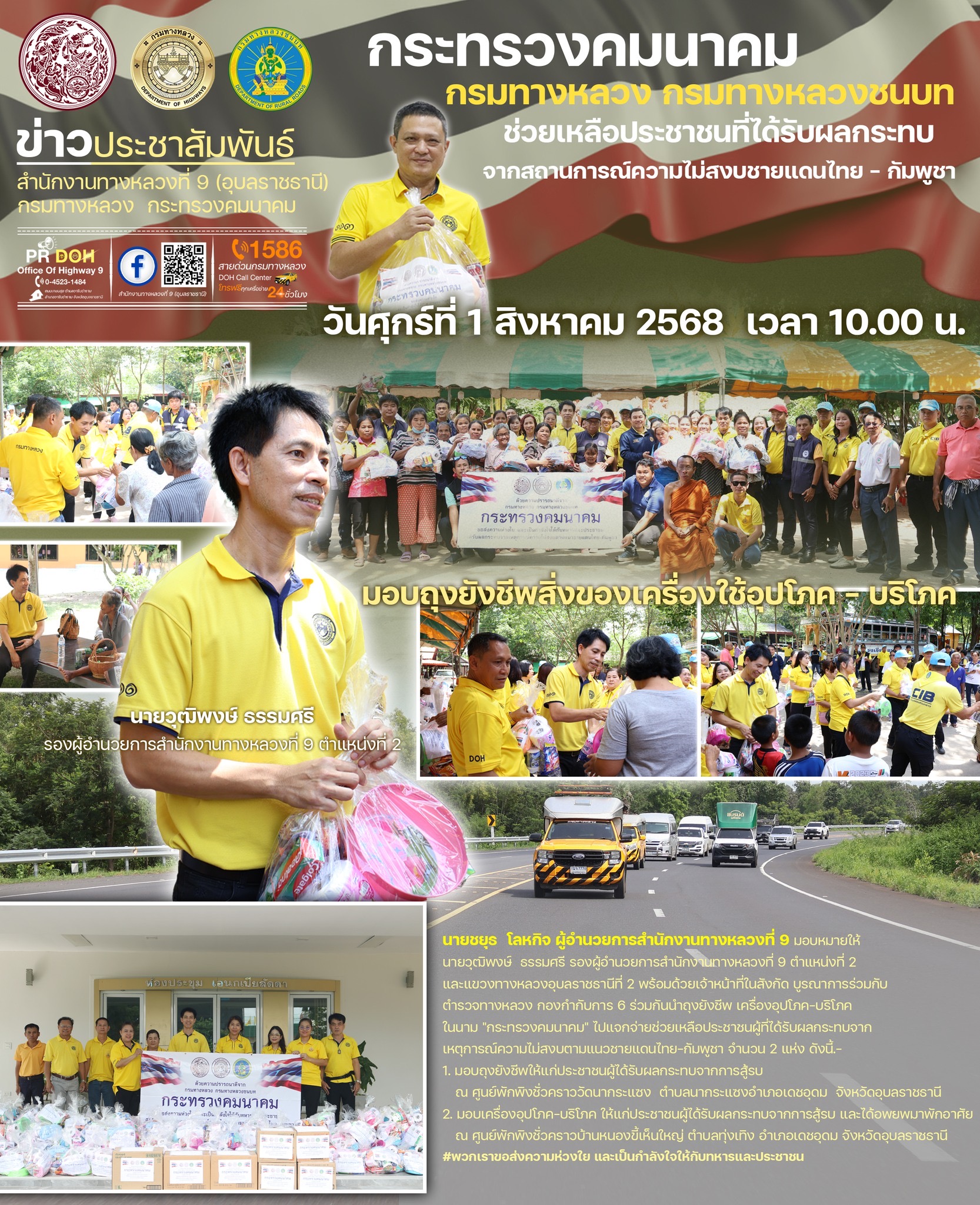 มอบถุงยังชีพผู้ที่ได้รับผลกระทบจากเหตุการณ์ความไม่สงบตามแนวชายแดนไทย–กัมพูชา