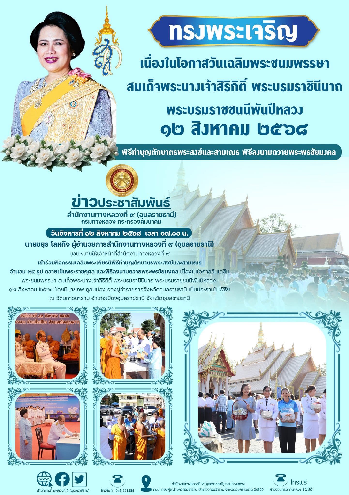 พิธีทำบุญตักบาตร วันเฉลิมพระชนมพรรษา สมเด็จพระนางเจ้าสิริกิติ์ พระบรมราชินีนาถ พระบรมราชชนนีพันปีหลวง