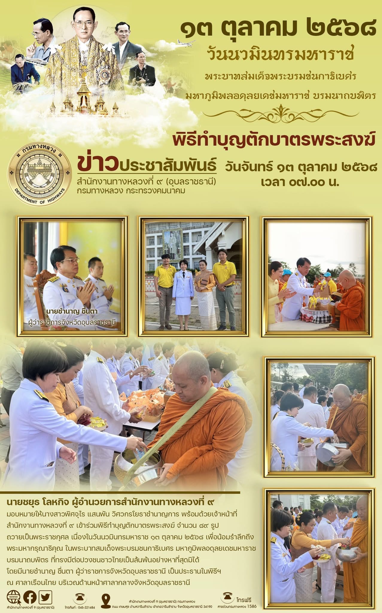 ทำบุญตักบาตรวันนวมินทรมหาราช ๑๓ ตุลาคม ๒๕๖๘