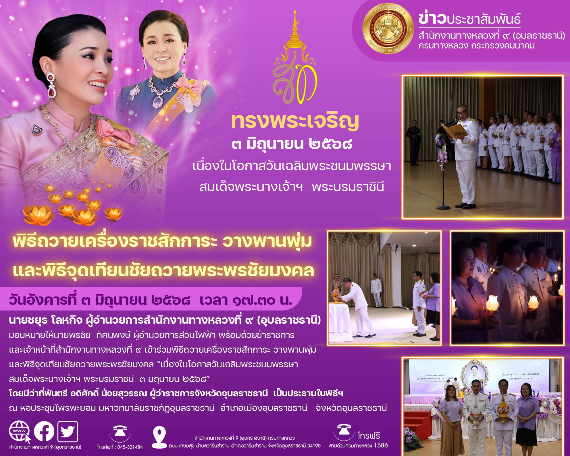 วันเฉลิมพระชนมพรรษา สมเด็จพระนางเจ้าฯ พระบรมราชินี ๓ มิถุนายน ๒๕๖๘