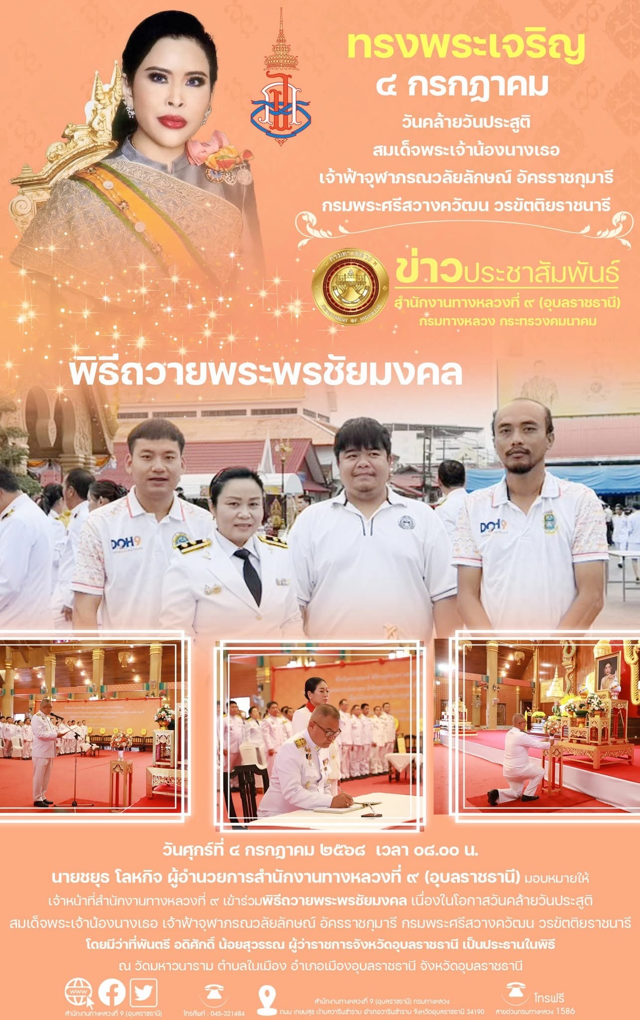 ร่วมพิธีถวายพระพรชัยมงคล เนื่องในโอกาสวันคล้ายวันประสูติสมเด็จพระเจ้าน้องนางเธอ เจ้าฟ้าจุฬาภรณวลัยลักษณ์ อัครราชกุมารี กรมพระศรีสวางควัฒน วรขัตติยราชนารี