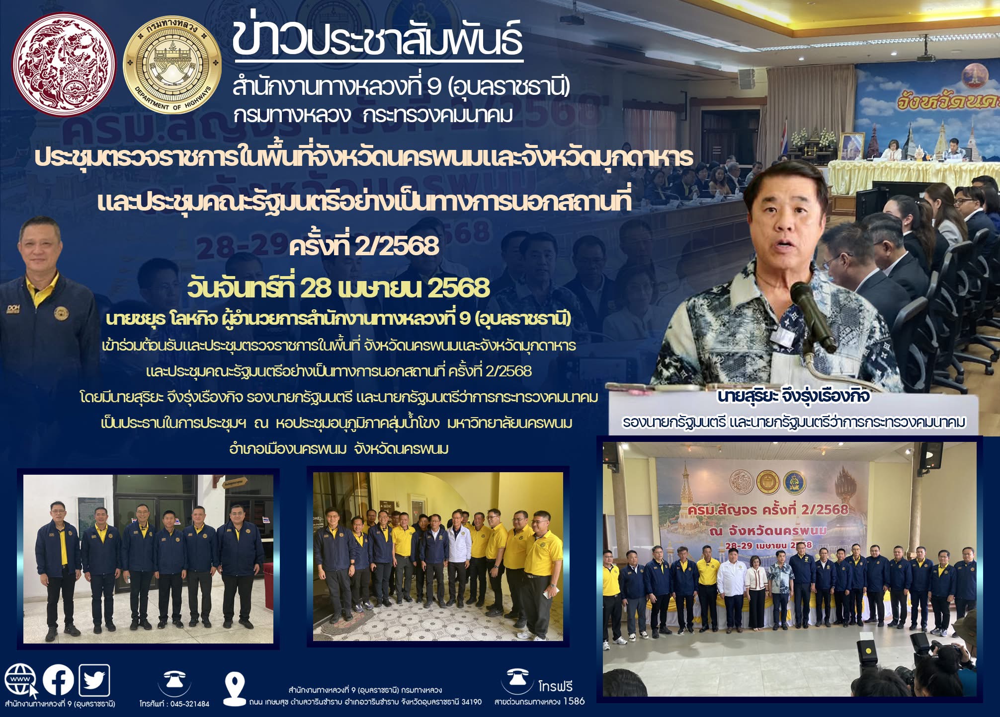 ร่วมต้อนรับและประชุมตรวจราชการในพื้นที่ จังหวัดนครพนมและจังหวัดมุกดาหาร และประชุมคณะรัฐมนตรีอย่างเป็นทางการนอกสถานที่ ครั้งที่ 2/2568