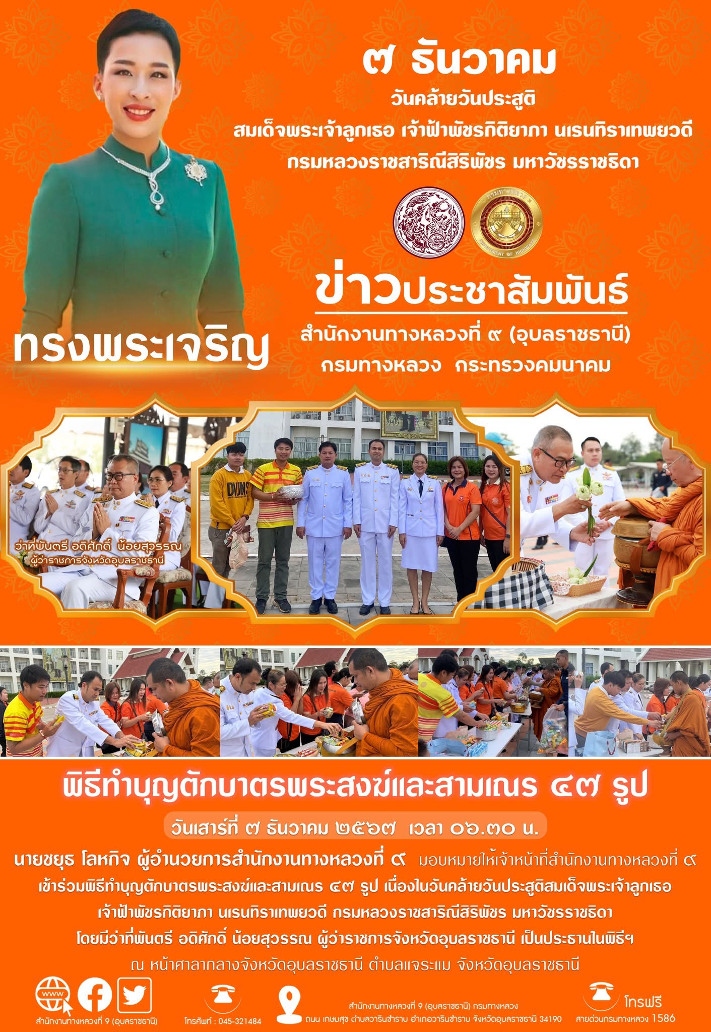 พิธีทำบุญตักบาตร วันคล้ายวันประสูติสมเด็จพระเจ้าลูกเธอเจ้าฟ้าพัชรกิติยาภา