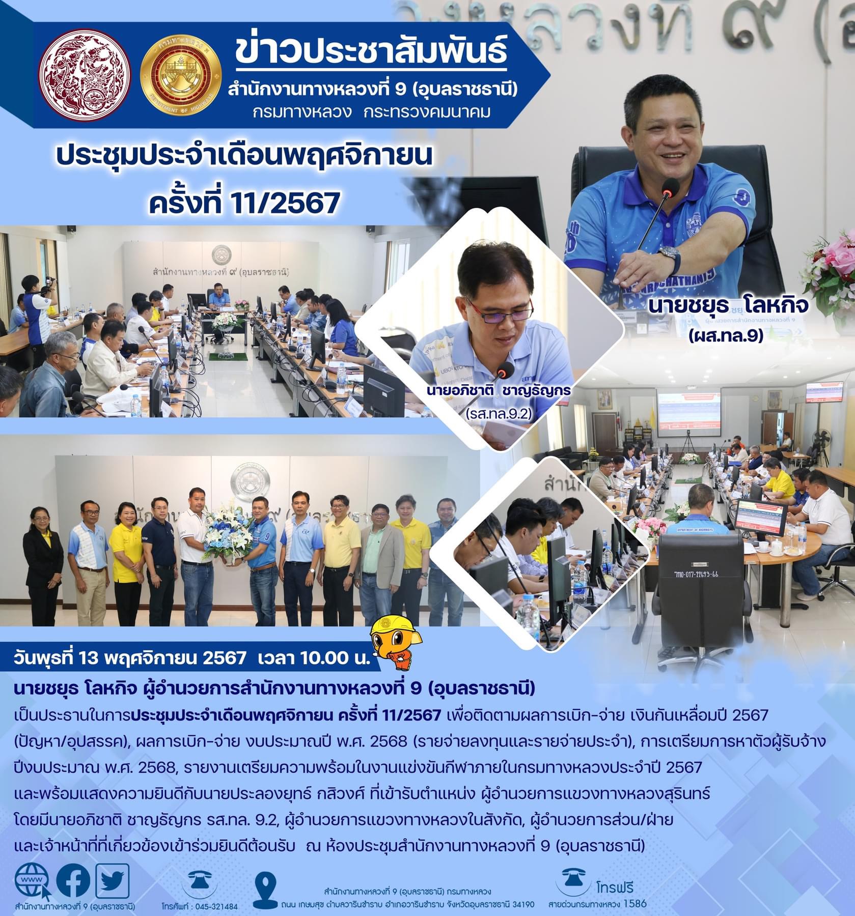 ประชุมผู้บริหารกรมทางหลวง ประจำเดือนพฤศจิกายน 2567 ครั้งที่ 2/2567