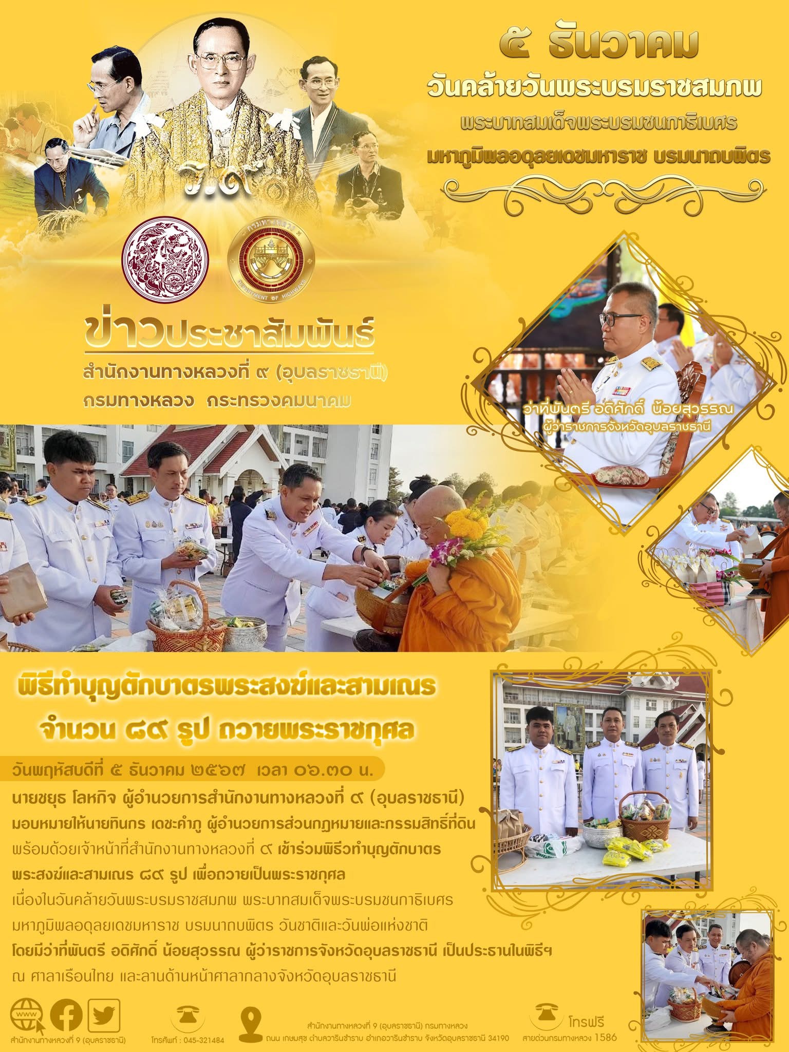 พิธีทำบุญตักบาตร วันคล้ายวันพระบรมราชสมภพรัชกาลที่ 9 วันชาติและวันพ่อแห่งชาติ