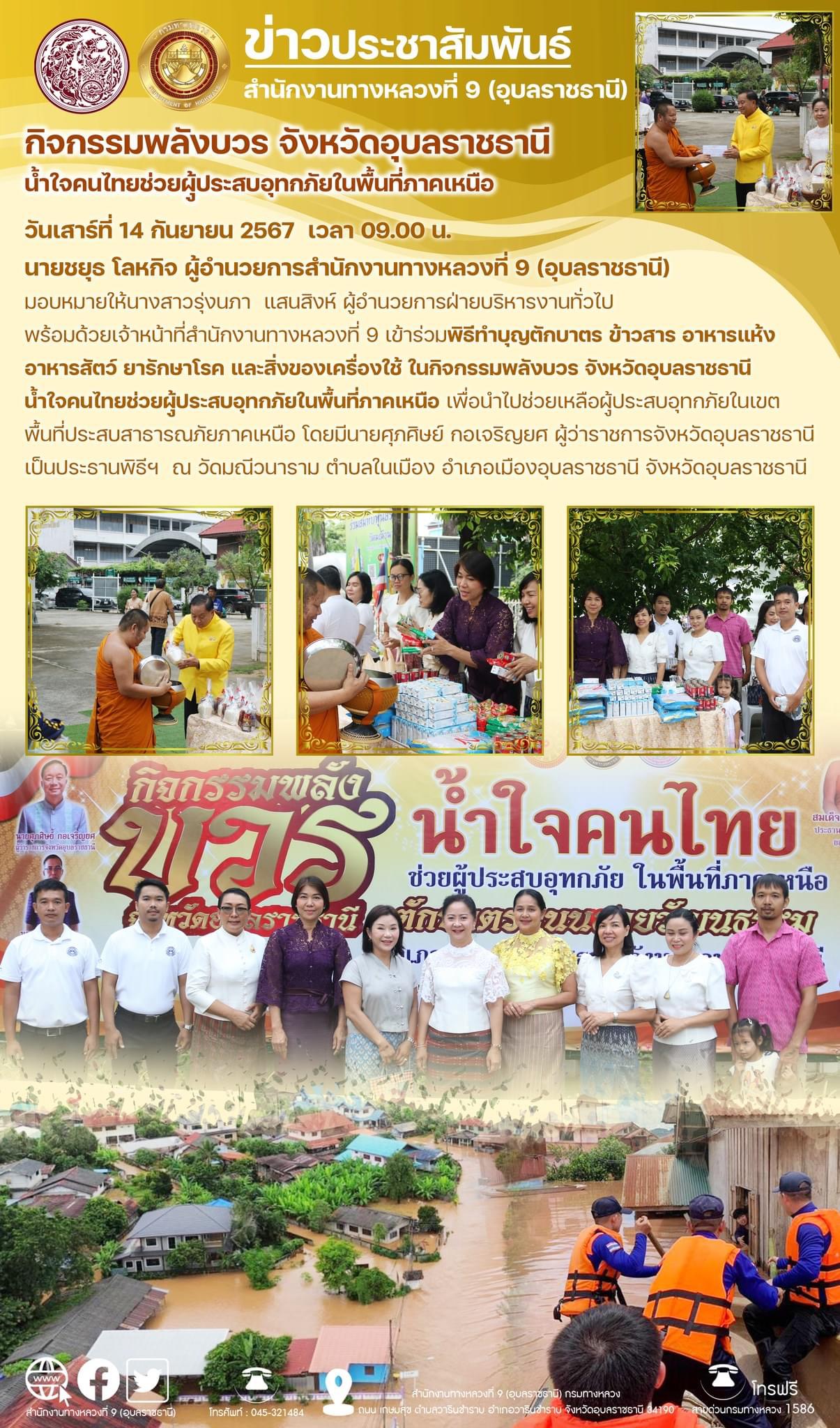 ร่วมพิธีทำบุญตักบาตร ข้าวสาร อาหารแห้ง อาหารสัตว์ ยารักษาโรค และสิ่งของเครื่องใช้ ช่วยผู้ประสบอุทกภัยในพื้นที่ภาคเหนือ
