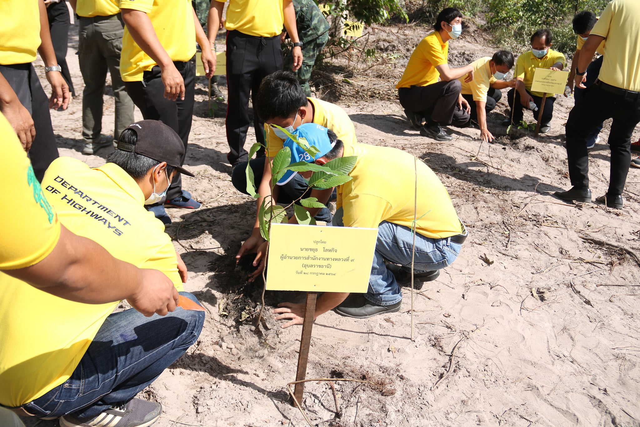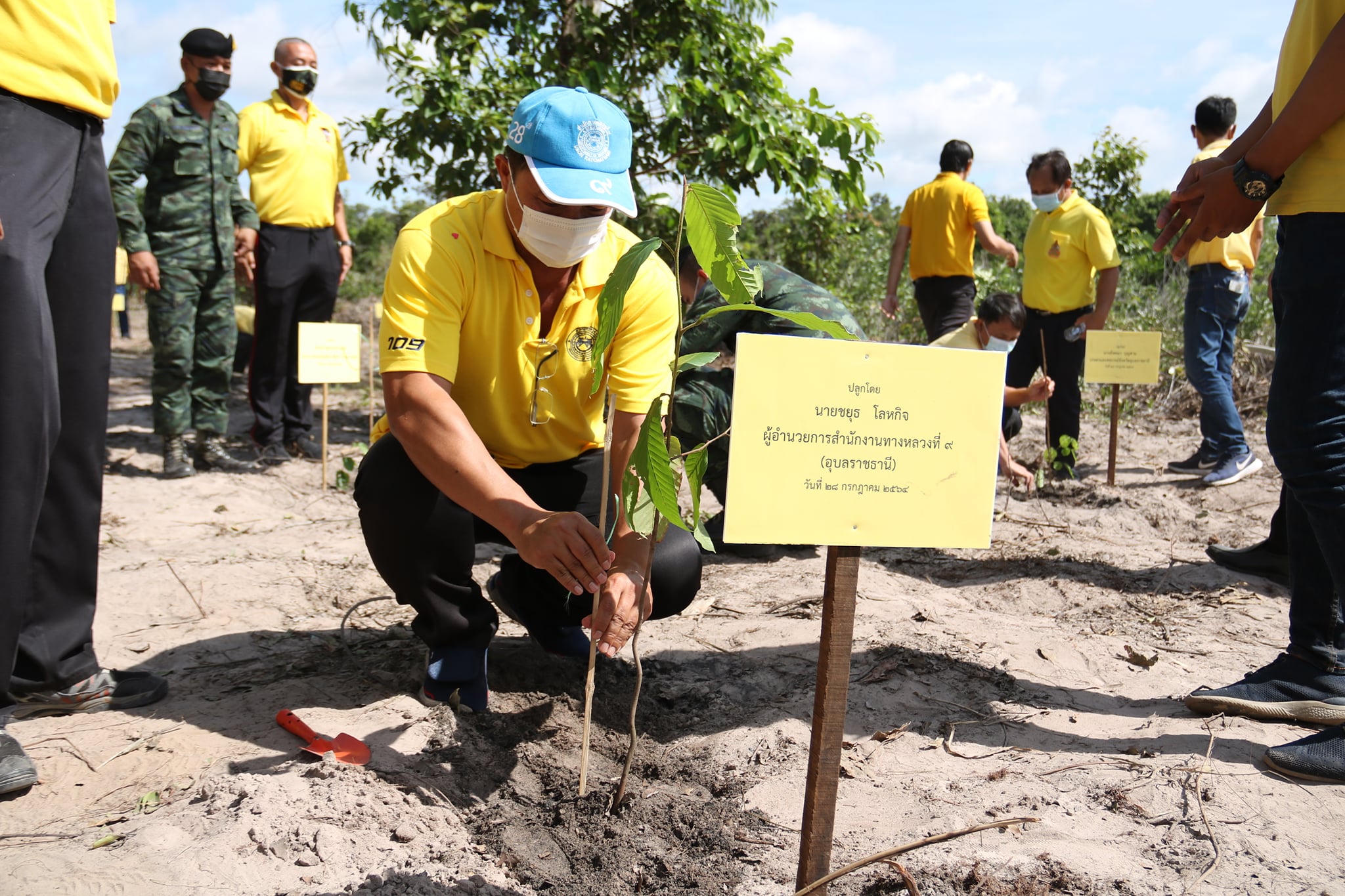 วันนี้ (28 กรกฏาคม 2564) นายชยุธ โลหกิจ ผู้อำนวยการสำนักงานทางหลวงที่ 9 (อุบลราชธานี) มอบหมายให้ นายสมจินต์ นิยมพันธ์ วิศวกรเครื่องกลชำนาญการ นำทีมข้าราชการ เจ้าหน้าที่สำนักงานทางหลวงที่ 9 (อุบลราชธานี) เข้าร่วมกิจกรรมปลูกต้นไม้ ตามโครงการปลูกป่า และป้องกันไฟป่าเฉลิมพระเกียรติพระบาทสมเด็จพระเจ้าอยู่หัว เนื่องในโอกาสวันเฉลิมพระชนมพรรษา 28 กรกฏาคม 2564 เพื่อเป็นการแสดงออกถึงความจงรักภักดี บำเพ็ญประโยชน์ถวายเป็นพระราชกุศลแด่พระบาทสมเด็จพระเจ้าอยู่หัว ณ ป่าสงวนแห่งชาติป่าสีสุก บ้านอีต้อม ตำบลศรีสุข อำเภอเขื่องใน จังหวัดอุบลราชธานี เนื้อที่รวม 20 ไร่