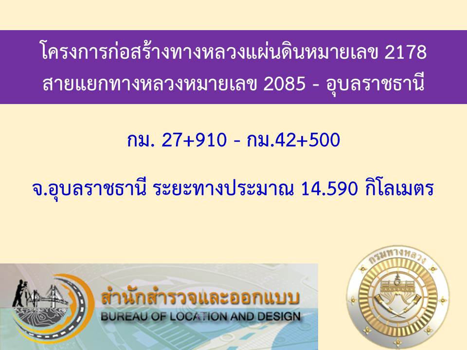 ทางหลวงหมายเลข 2178 สายแยกทางหลวงหมายเลข 2085 - อุบลราชธานี ระหว่าง กม.27+910 – กม.42+500 ระยะทาง 14.590 กิโลเมตร