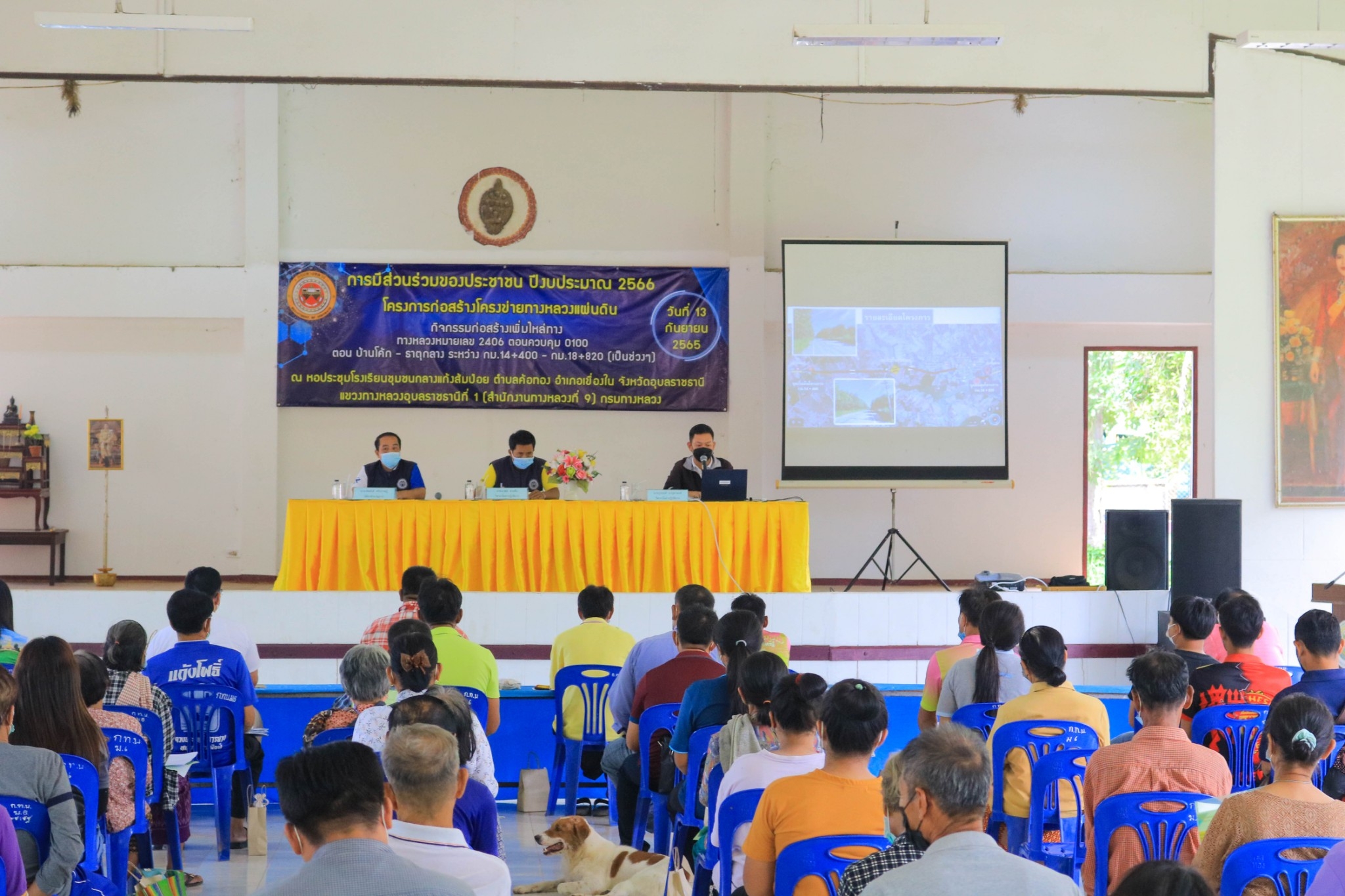 จัดการประชุม การมีส่วนร่วมของประชาชนปี 2566 โครงการก่อสร้างโครงข่ายทางหลวงแผ่นดิน กิจกรรมก่อสร้างเพิ่มไหล่ทางทางหลวงหมายเลข 2406 ตอนควบคุม 0100 ตอน บ้านโค้ก - ธาตุกลางระหว่าง กม.14+400 - กม.18+820 (เป็นช่วงๆ) ปริมาณงาน 1 แห่ง