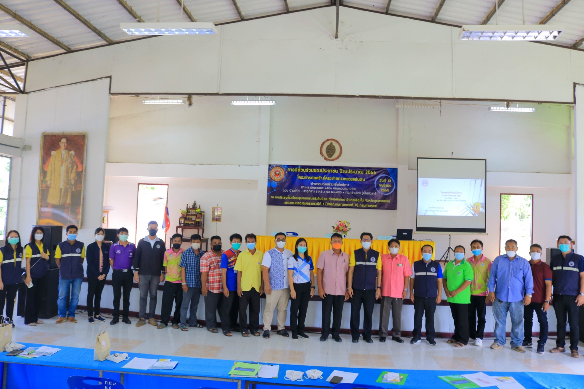 พร้อมด้วยเจ้าหน้าที่ในสังกัดฯ ดำเนินการจัดการประชุม การมีส่วนร่วมของประชาชนปี 2566 โครงการก่อสร้างโครงข่ายทางหลวงแผ่นดิน กิจกรรมก่อสร้างเพิ่มไหล่ทางทางหลวงหมายเลข 2406 ตอนควบคุม 0100 ตอน บ้านโค้ก - ธาตุกลางระหว่าง กม.14+400 - กม.18+820 (เป็นช่วงๆ) ปริมาณงาน 1 แห่ง โดยมี นายสมร ศิลากุล รองนายกองค์การบริหารส่วนตำบลค้อทอง เป็นประธานในพิธี ณ ห้องประชุมโรงเรียนชุมชนกลางแก้งส้มป่อย ตำบลค้อทอง อำเภอเขื่องใน จังหวัดอุบลราชธานี ทั้งนี้ เพื่อความปลอดภัย แขวงทางหลวงอุบลราชธานีที่ 1 จัดตั้งจุดคัดกรอง COVID-19 แจกหน้ากากอนามัย และเจลล้างมือ ก่อนการเข้าร่วมประชุม