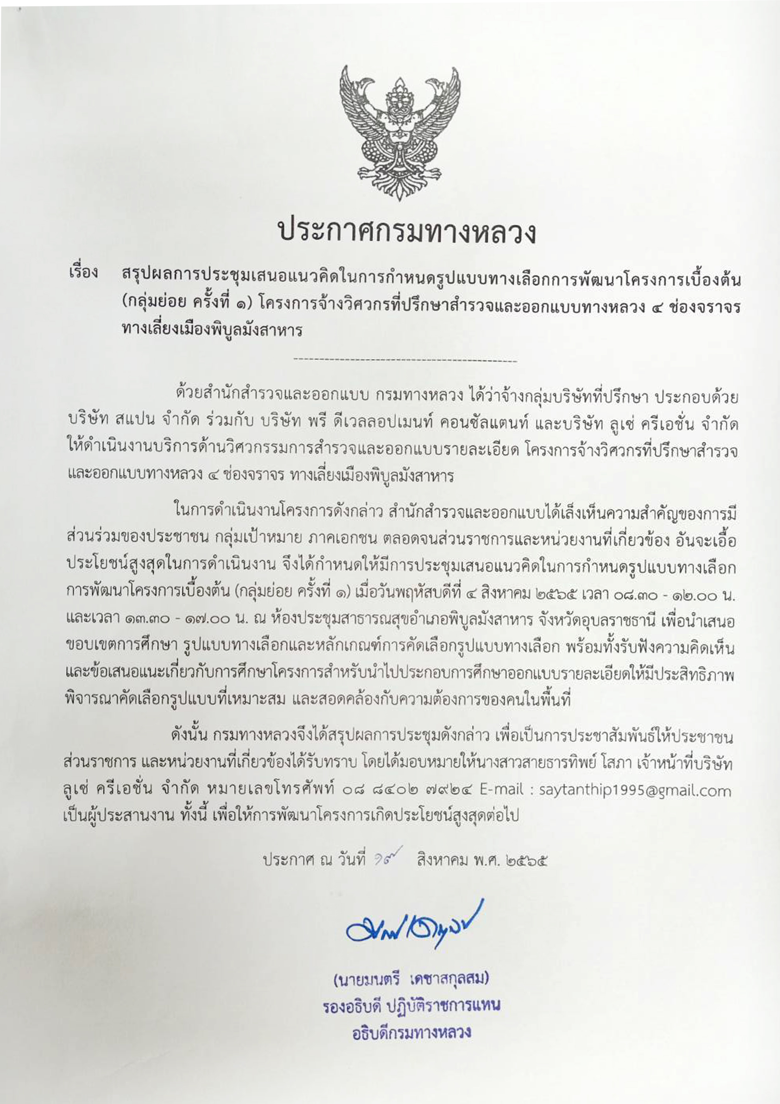 สรุปผลการประชุมเสนอแนวคิดในการกำหนดรูปแบบทางเลือกการพัฒนาโครงการเบื้องต้น (กลุ่มย่อย ครั้งที่ 1 )