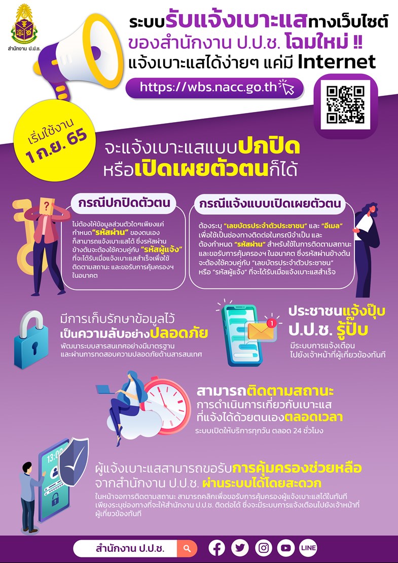 ระบบรับแจ้งเบาะแสทางเว็บไซต์สำนักงาน ป.ป.ช.