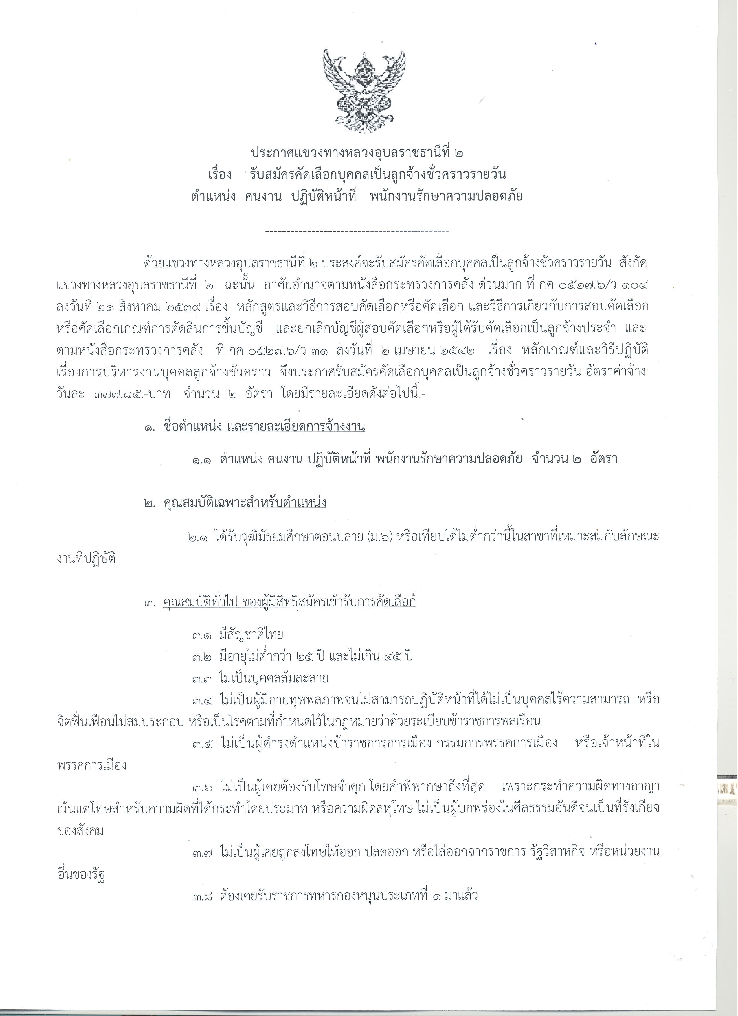 ตำแหน่ง คนงาน ปฏิบัติหน้าที่ พนักงานรักษาความปลอดภัย จำนวน 2 อัตรา