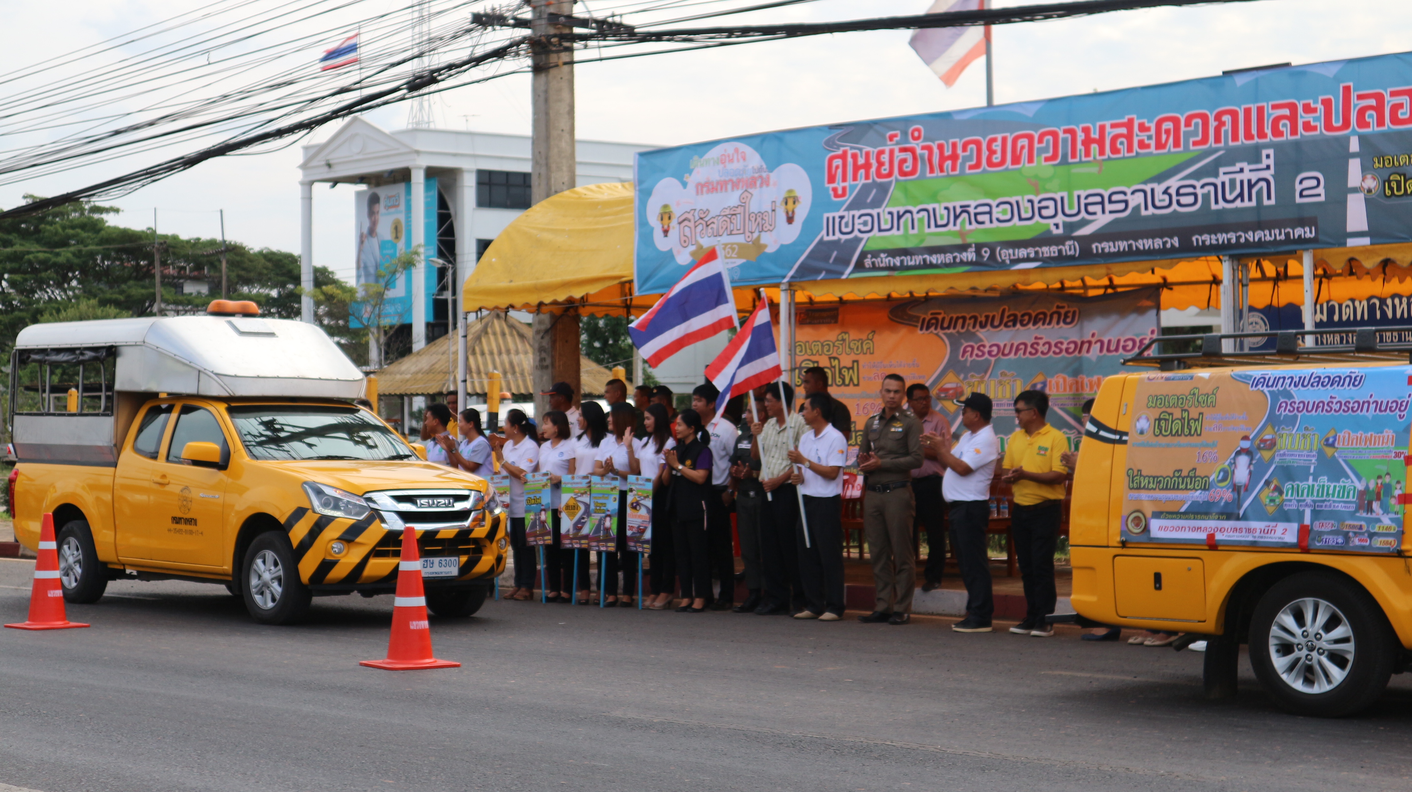 นายรัฐพงษ์ เลิศสุวรรณไพศาล ผู้อำนวยการแขวงทางหลวงอุบลราชธานีที่ 2 พร้อมเจ้าหน้าที่ในสังกัดร่วมพิธีเปิดศูนย์ปฏิบัติการป้องกันและลดอุบัติเหตุทางถนนในช่วงเทศกาลปีใหม่ พ.ศ.2562 และปล่อยขบวนรถรณรงค์ป้องกันและลดอุบัติเหตุทางถนน "ขับช้า เปิดไฟหน้า คาดเข็มขัด" รณรงค์และป้องกันอุบัติเหตุทางถนน ณ บริเวณหน้าสำนักงานหมวดทางหลวงเดชอุดม ในทางหลวงหมายเลข 24 ที่ กม.378 + 775 ด้านซ้ายทางโดยหมวดทางหลวงเดชอุดม มีบริการห้องน้ำสะอาด รวมถึงน้ำดื่ม กาแฟ ผ้าเย็น ไว้คอยบริการให้แก่ประชาชนตลอดช่วงเทศกาลปีใหม่ ขอให้ทุกท่านมีความสุขกับการเดินทาง